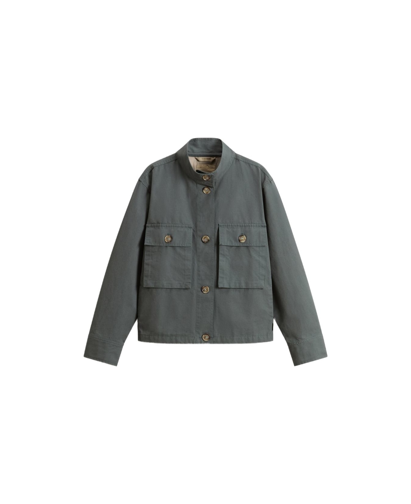 dark grey cotton stand-up collar button fastening chest flap pockets button cuffs side welt pockets Composition: Natural (veg)->cotton100. , 0%