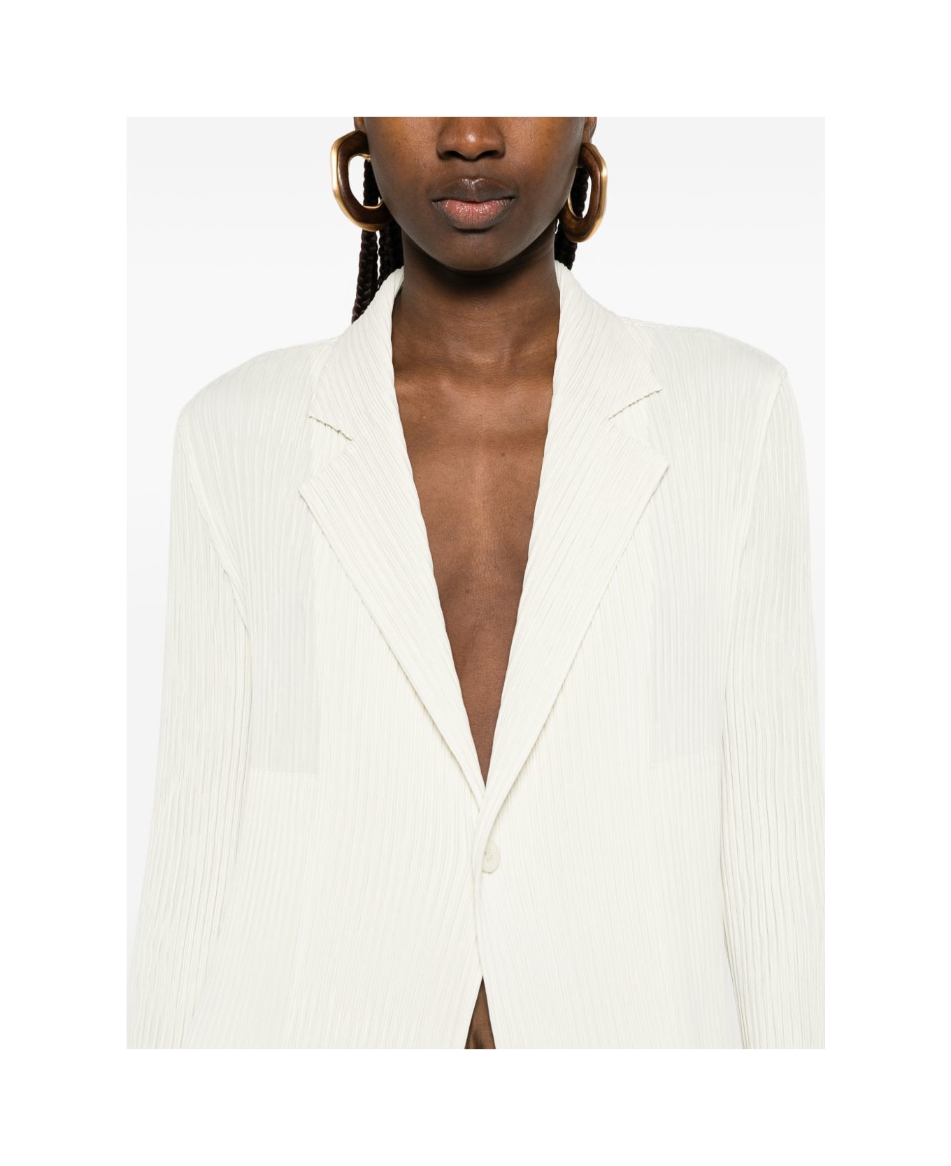 cream pleated lapel collar single-button closure long sleeves