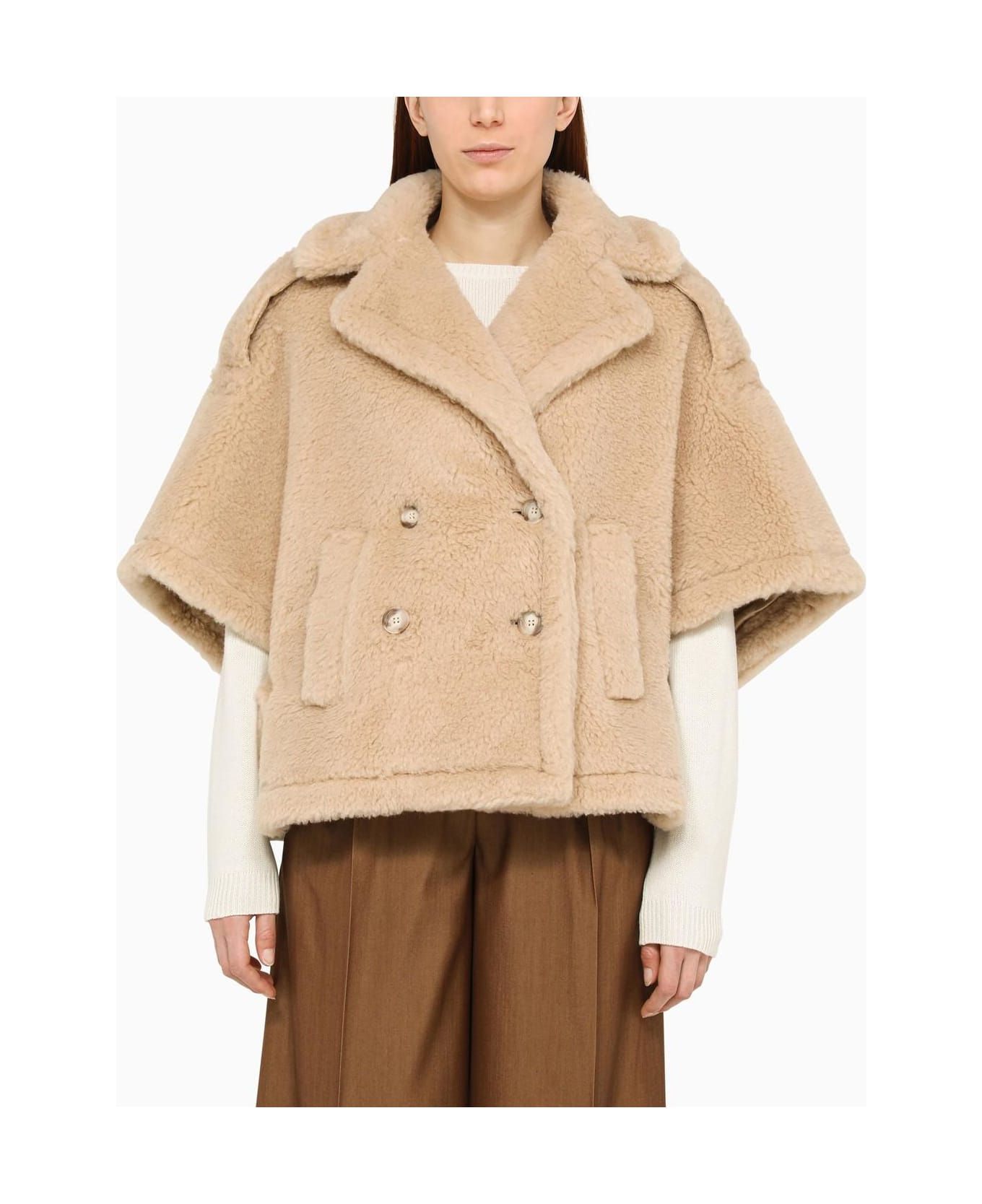 Camel Beige Double-breasted Cape Coat By Max Mara Featuring Bell Sleeves, Wide Lapels, Two Welt Pockets On The Front And Slits On The Sides. composition: Fabric I: 70% Camel - 18% Virgin Wool - 12% Silk / Lining: 100% Viscose