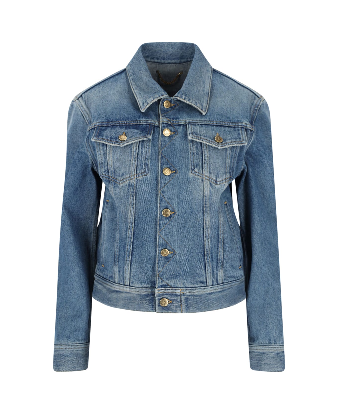 Golden Goose blue cotton denim jacket with classic collar, button closure, two chest flap pockets, two side welt pockets, logo detail sleeves, straight hem. Composition: 100% Cotton