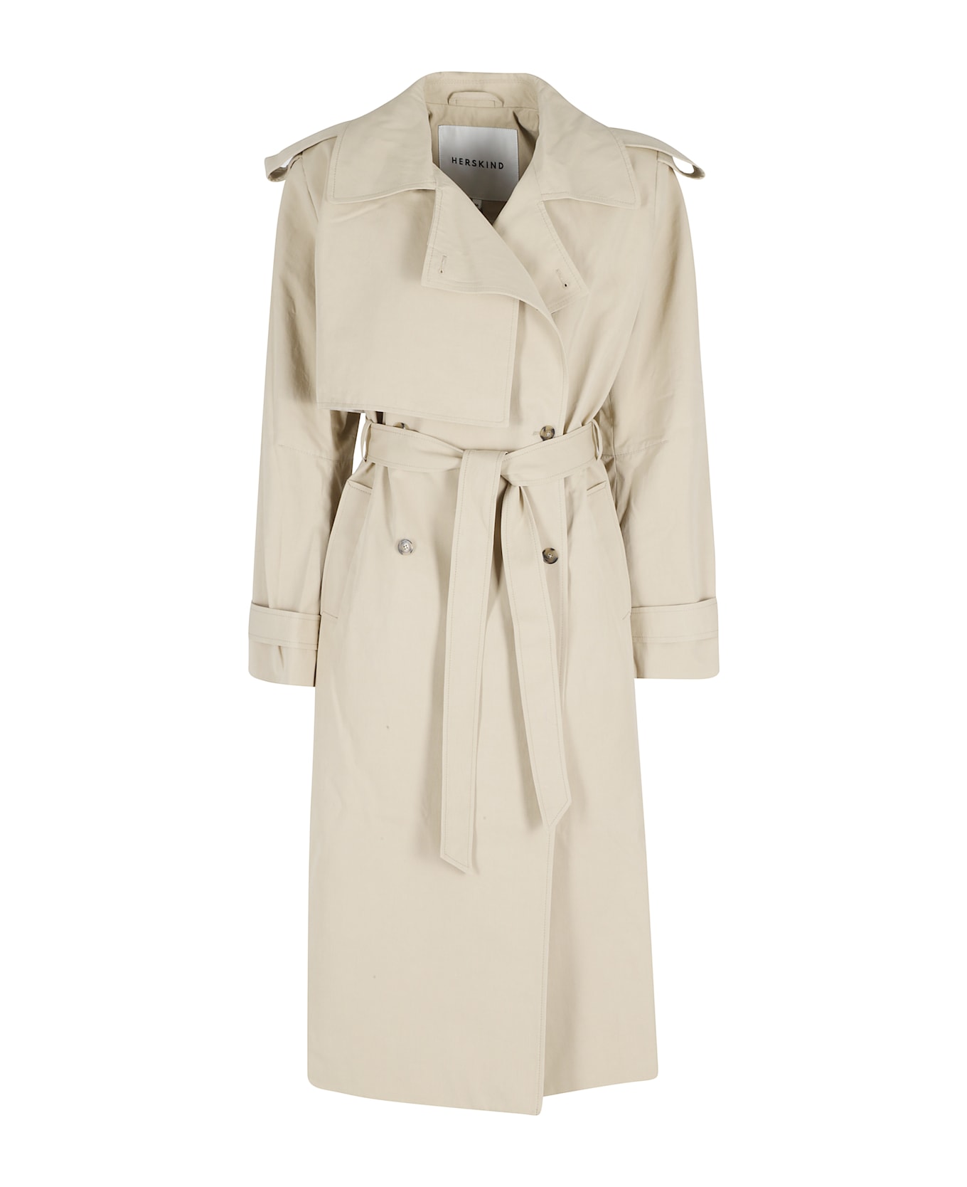 Category: Trench coat Article: Fernandes Trench coat Brand: Herskind Color: Beige Neckline: With lapels Pockets: Side welt Details: Waist belt Closure: Double-breasted with buttons SIZE AND FIT Fit: Comfortable Sleeve: Long, Adjustable cuff by strap