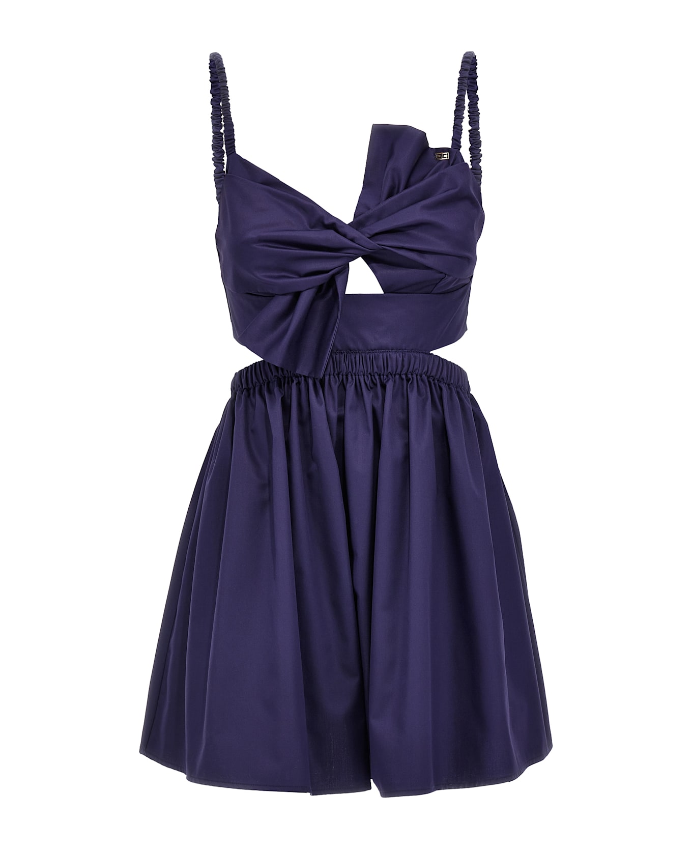 Sleeveless mini dress in cotton poplin with thin elastic straps, top with cut-out details, maxi front bow and back hook closure, and curled skirt with elastic waistband. Composition: 100% cotton