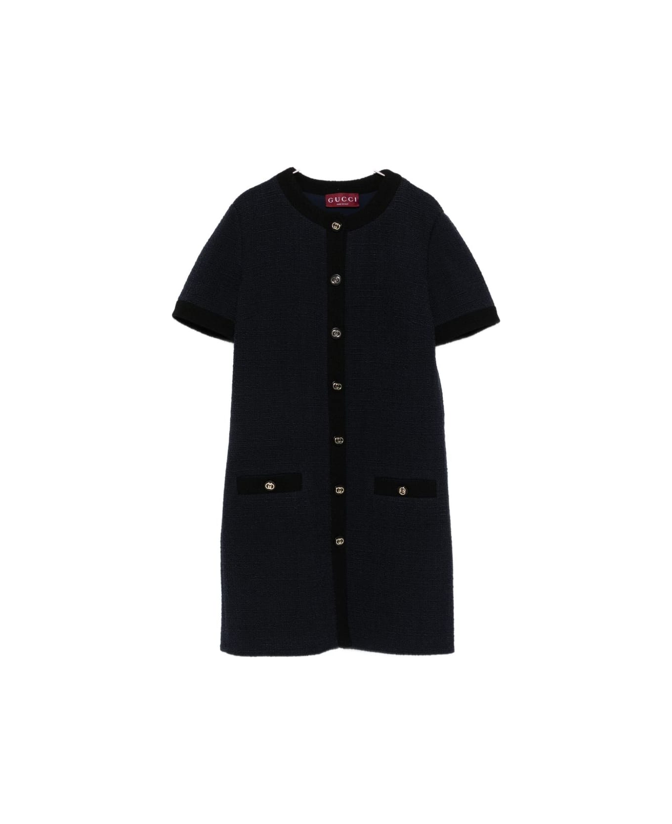 blue button fastening two pockets short sleeves round neck Composition: 100% Wool Mix