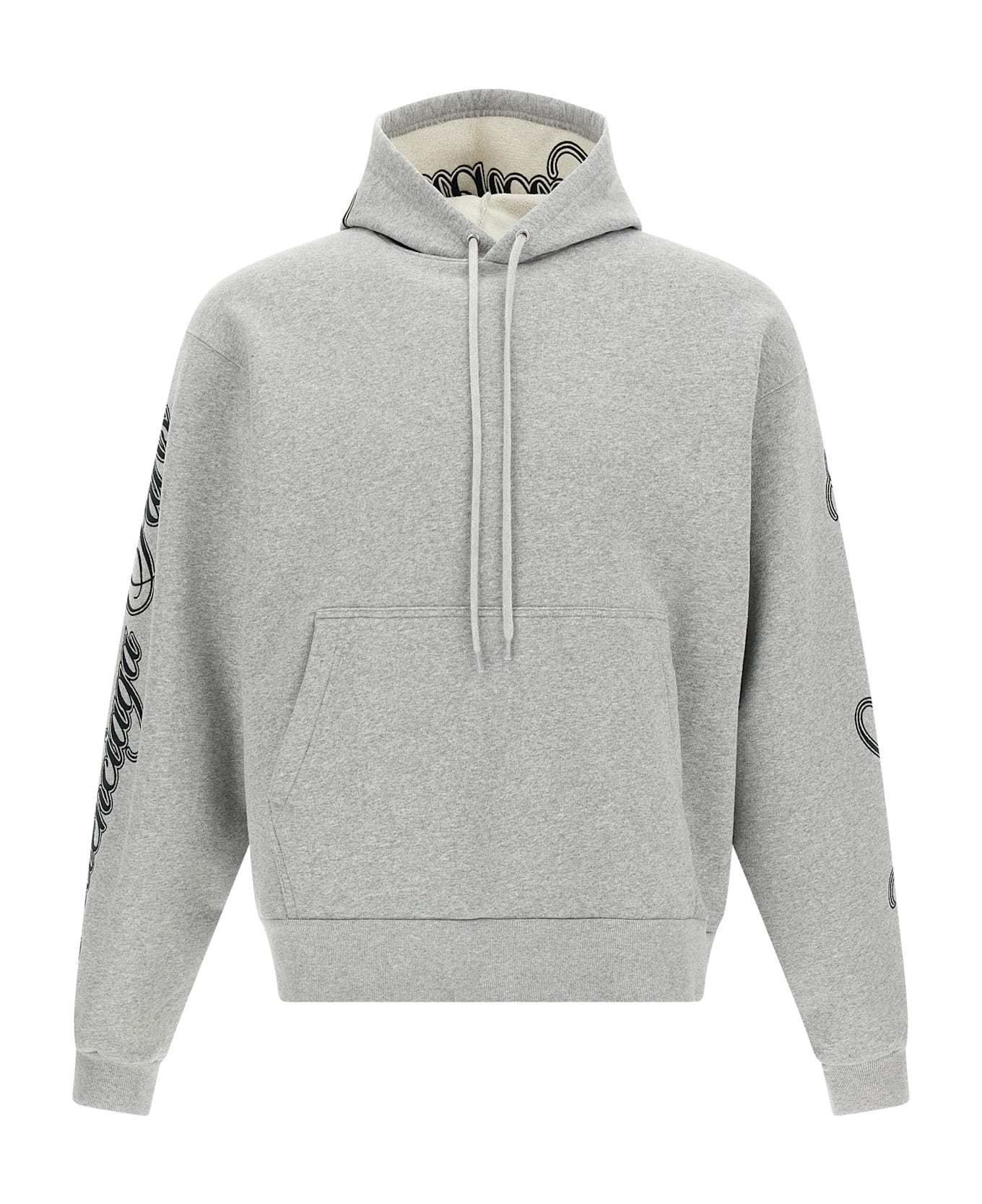 Dry mélange fleece hoodie with 'Cursive' embroidery, kangaroo pocket, long sleeves with cuffs and dropped shoulders, and headband. Composition: 100% cotton