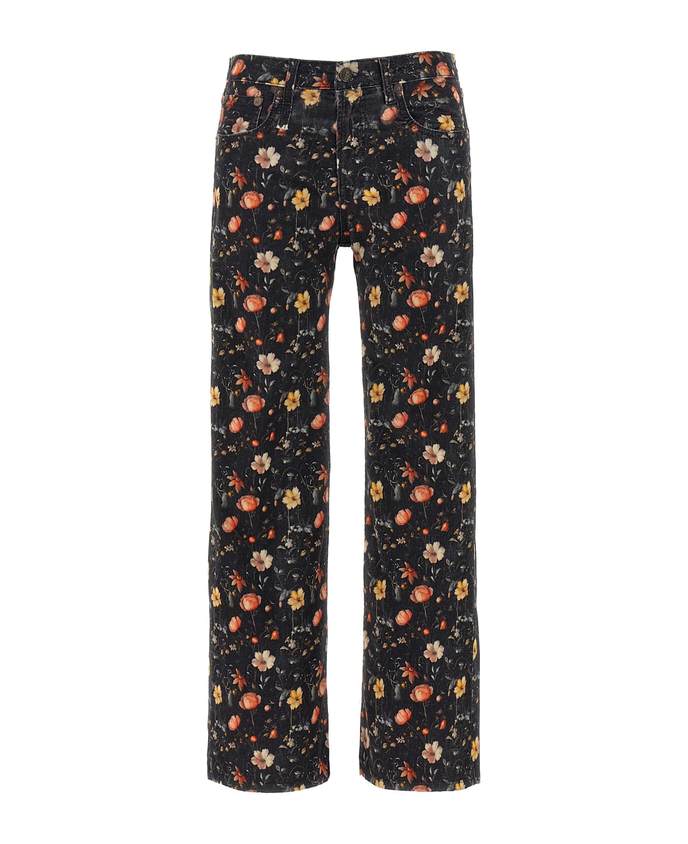 'Joan Kick Flare' '' peach hand cotton jeans with 'Lunar Petal Velveteen' print, slightly flared straight leg, front zip and button closure, five pockets, back leather logo tag.