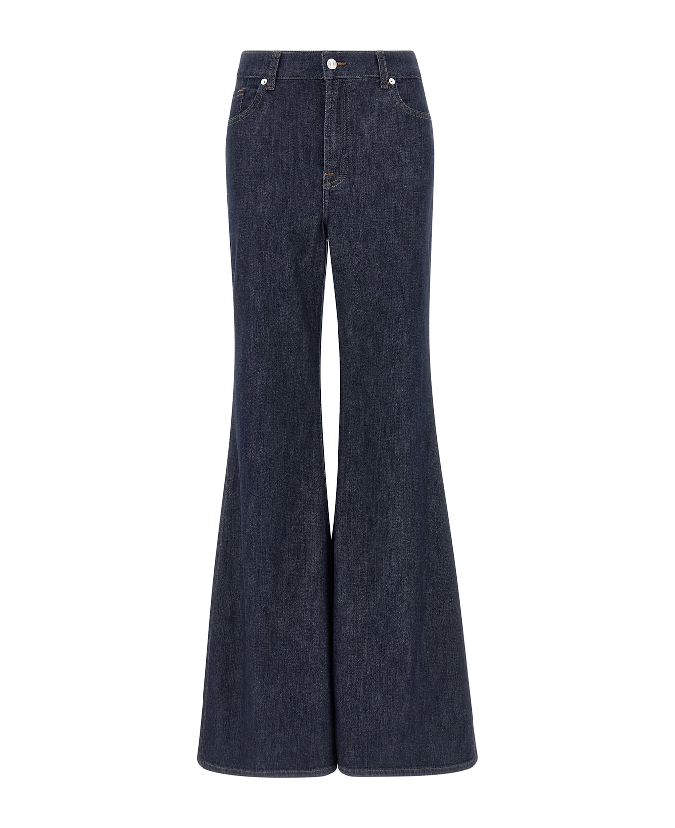 'Retro Flare' stretch cotton denim jeans with contrast stitching, high waist, wide leg with extra flared fit, zip and front button closure, five pockets. Composition: 50% cotton 50% modal