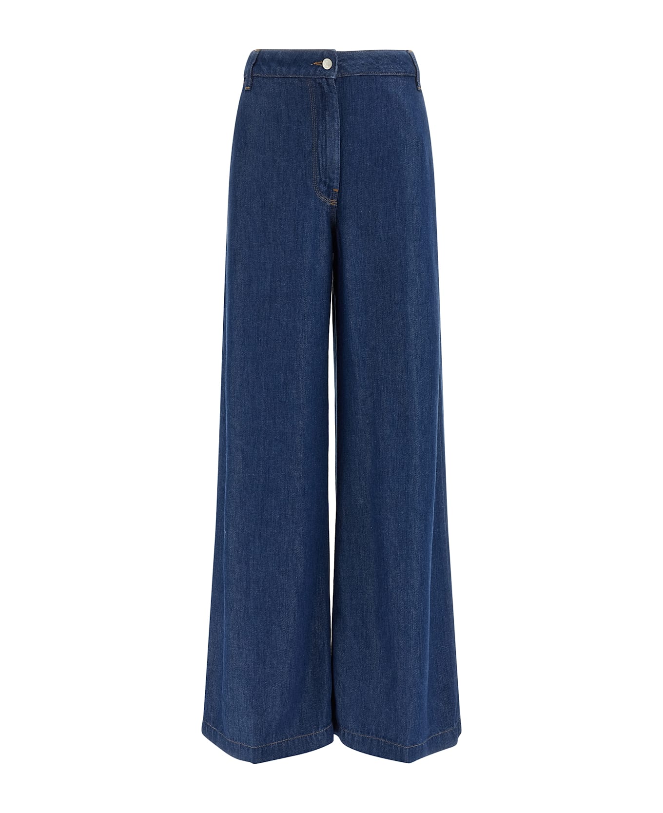 'Tilda' wide leg denim jeans with high waist, front zip and button closure, belt loops at the waist, slanted side pockets and back patch pockets. Composition: 100% tencel