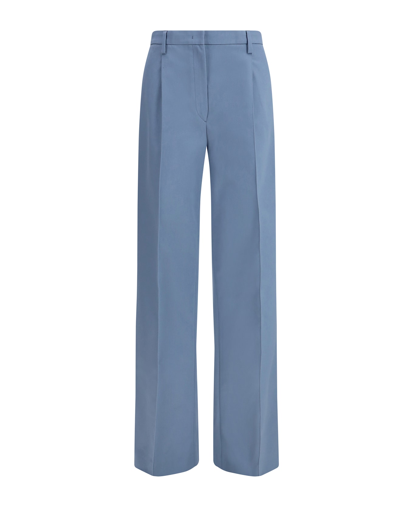 The cotton chino pants with straight design and zip-and-hook fastening by prada embody everyday elegance through clean lines and tailored construction. diagonal front welt pockets and two rear welt pockets with buttons enhance the classic and functional aesthetic, while front pleats add structure and movement to the silhouette. the unlined design ensures lightness and ease, making these pants by prada a refined and versatile wardrobe staple.