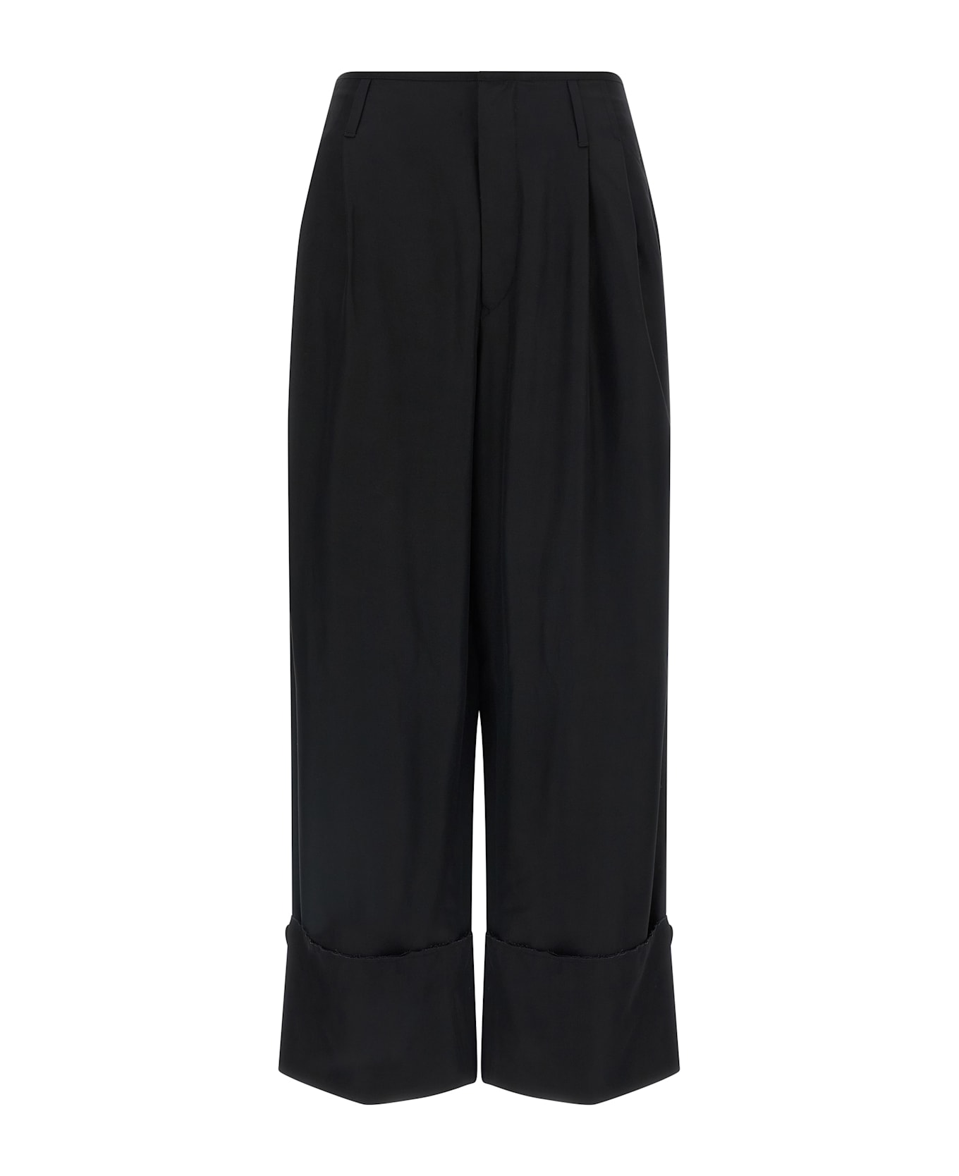Tailored 'Diana' trousers, double front pleats, front zip closure and hidden hook, side pockets, maxi turn-up on the hem with side metal button. Composition: 58% viscose 42% lyocell