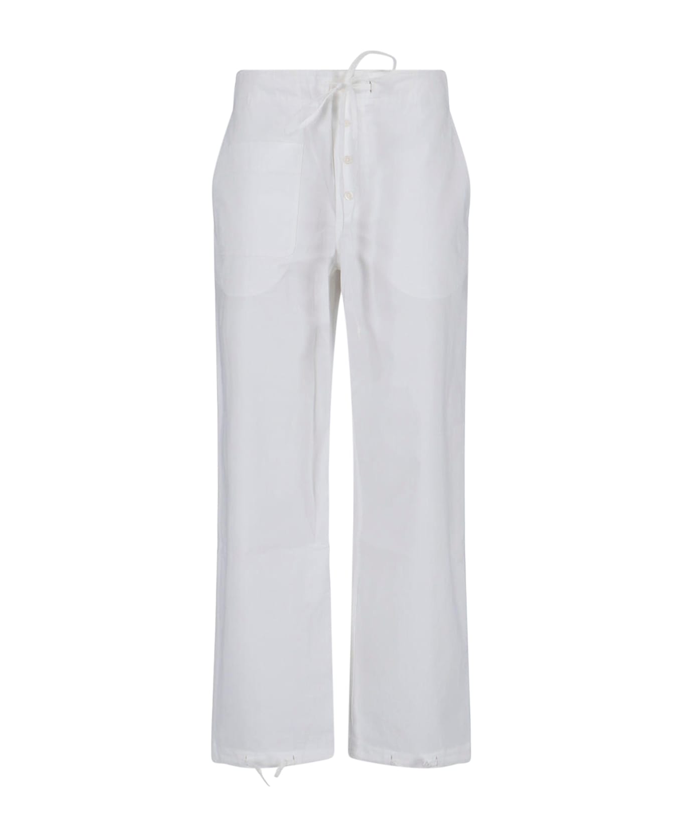 Victoria Beckham white poplin pants with mid waist, adjustable drawstring at the waist, front button closure, two side pockets, two back pockets, straight leg. Composition: 98% Cotton, 2% Elastane