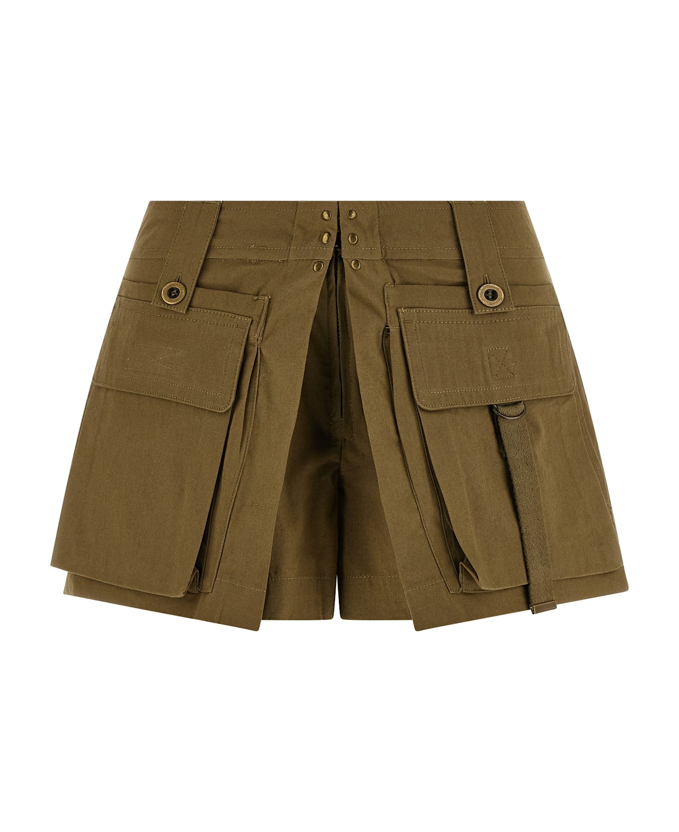 'Barta' flared skort cotton canvas shorts, front zip closure and double metal hook, mid waist with button loops, double cargo pockets with flap and grosgrain strap detail on the front, back welt pockets. Composition: 100% cotton