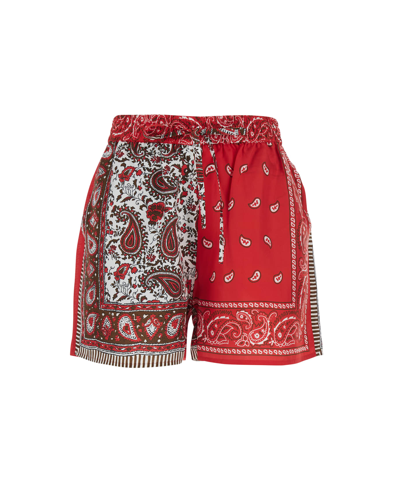 Red Shorts With Elastic Drawstring Waist And All-over Print In Silk Woman