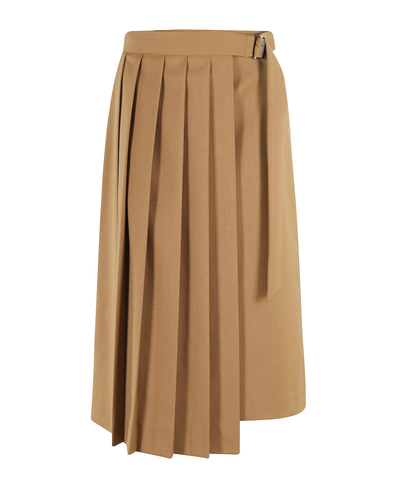 Messina Midi skirt -Canvas -Brown color -Plissé -Wallet closure with button and buckle