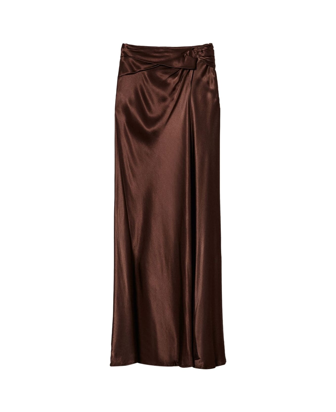 women's satin long skirt: viscose satin fabric regular life draped detail at front waist side zip closure back pleats oval-t logo on the back regular fit composition: 100% viscose