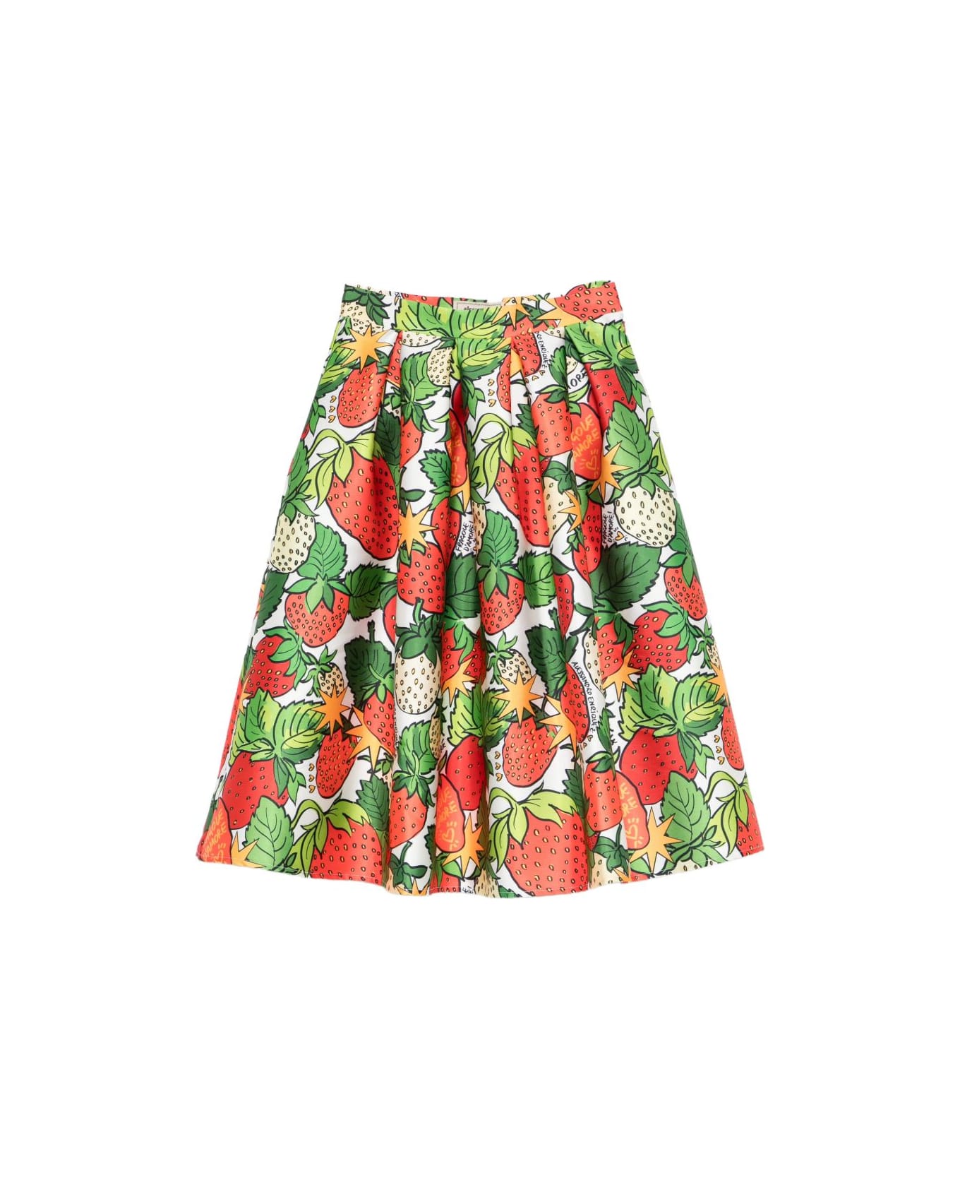 white strawberry print A-line zip fastening