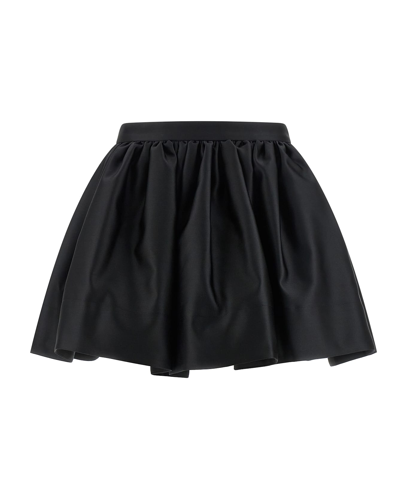 Mini satin skirt, viscose lining, balloon style with wide pleats, pockets, side zip closure. Composition: 100% polyester