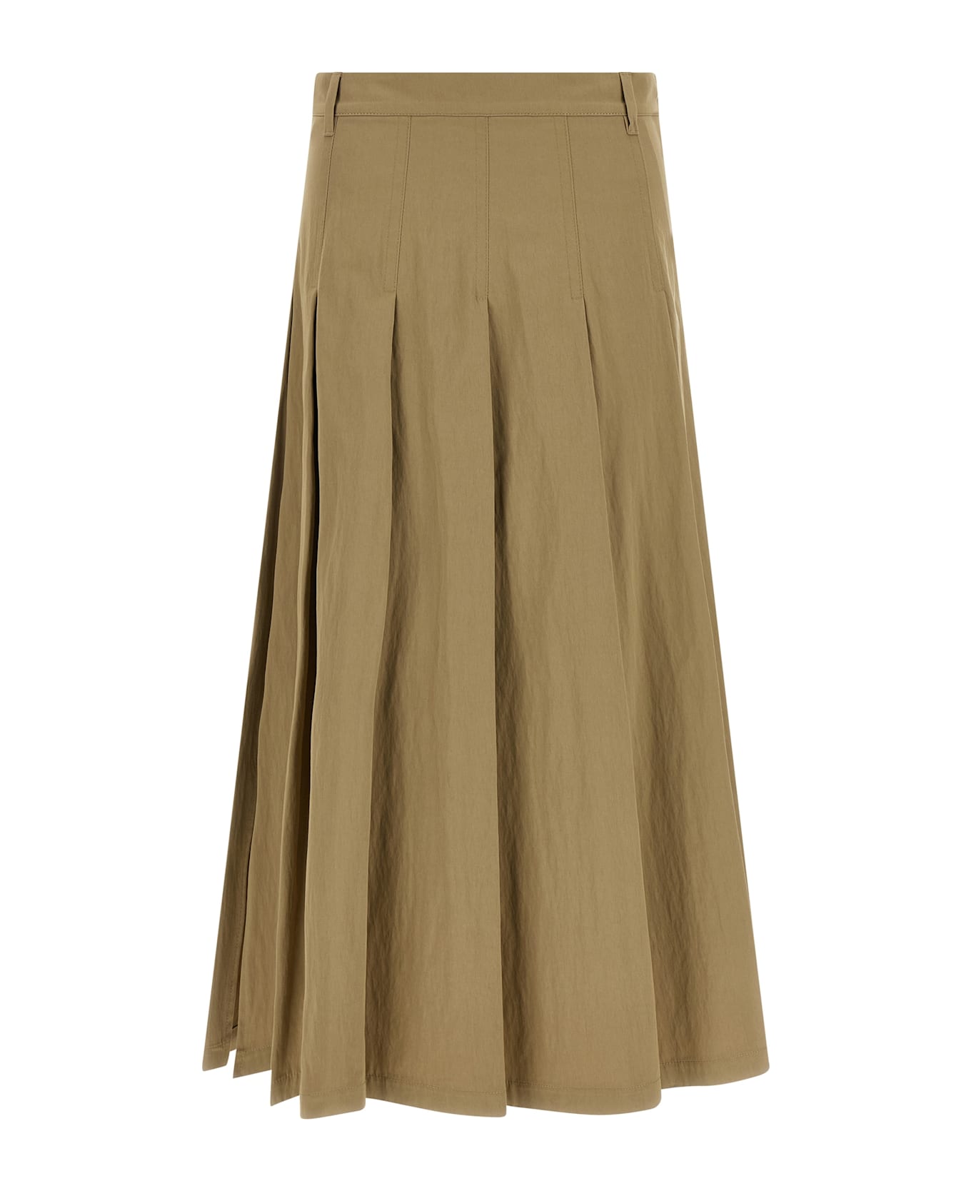 'WkDorme' midi skirt in washed gabardine of cotton blend, pleated panel construction on the front and back, A-line silhouette, pockets, side zip closure, unlined. Composition: 68% cotton 32% polyamide