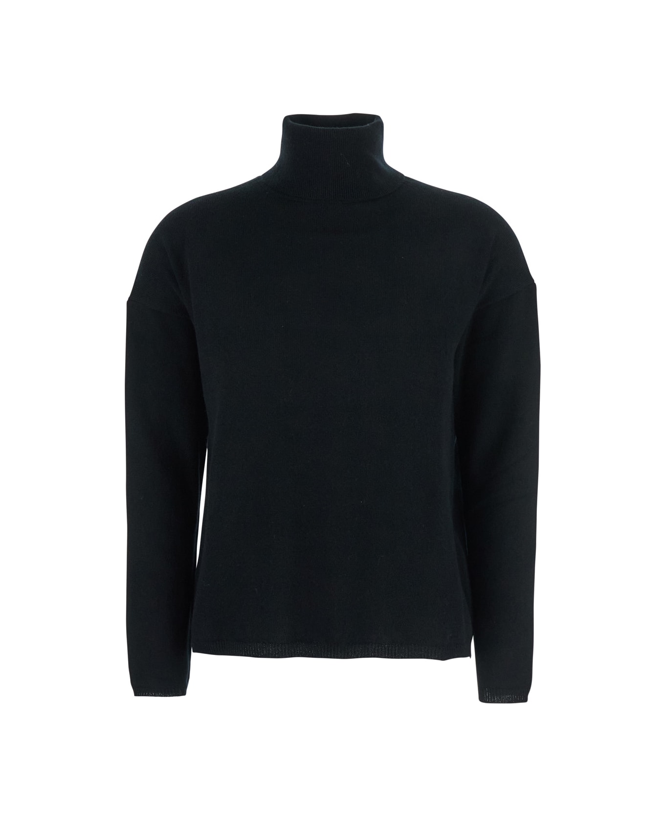 Sweater Black High neck Dropped shoulders Long sleeves Straight hem Cashmere Loose fit
