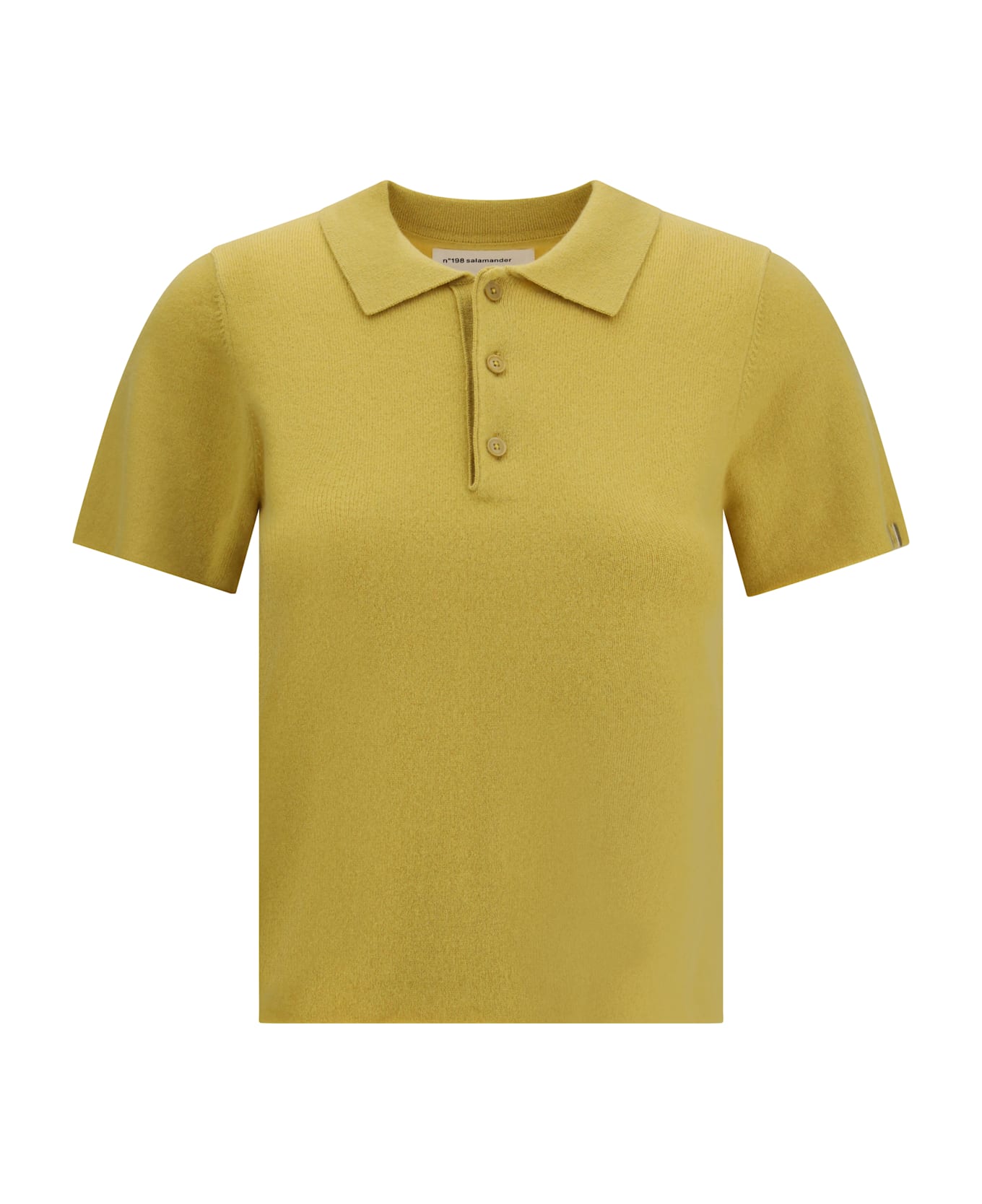 The n°198 salamander by extreme cashmere is a refined cashmere polo sweater designed in a petite fit, ideal for smaller frames. its short sleeves and clean, understated lines reflect the brand s minimalist aesthetic. the design features a polished polo collar with three corozo buttons, raw-cut cuffs and hem, and two subtle side slits that provide comfort and ease of movement while preserving its elegant simplicity.