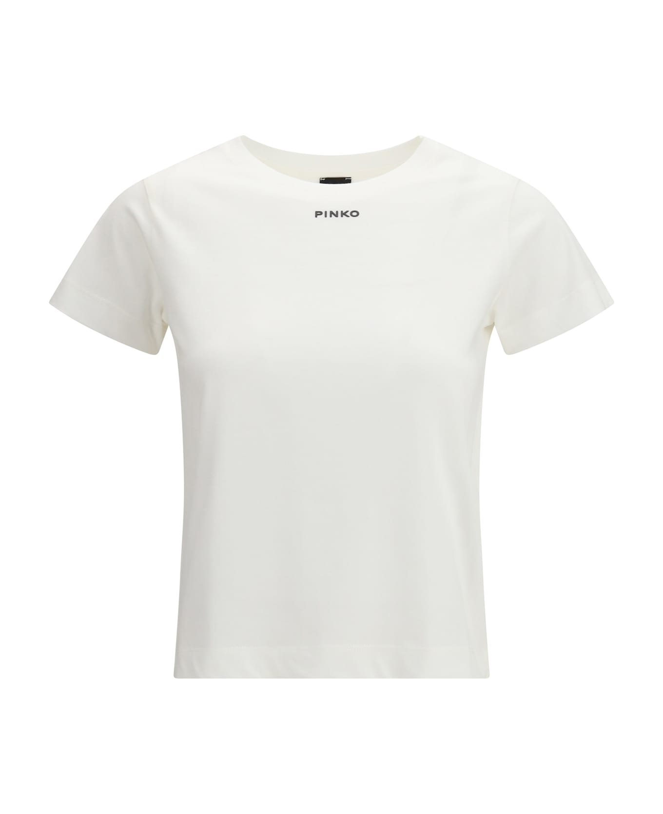 The mini logo t-shirt by pinko delivers a clean, modern look through its cotton jersey construction with an old-wash finish. the short-sleeved silhouette is enriched by a centrally placed mini logo print, adding a subtle touch of personality. a versatile piece designed to elevate everyday dressing with understated ease.