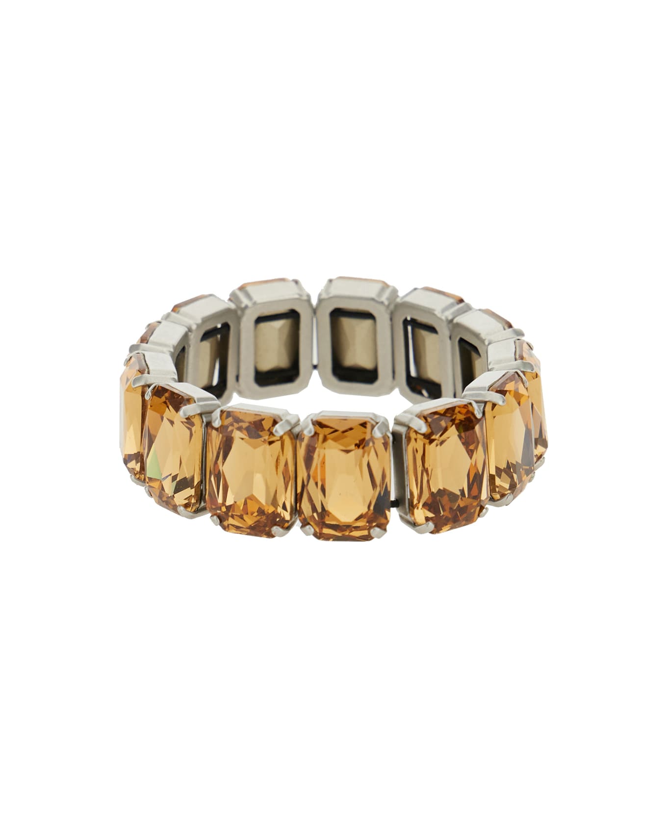 Bracelet Metallic Pull-on style Elastic wristband Crystal embellishments Silver tone metalware Glass and brass