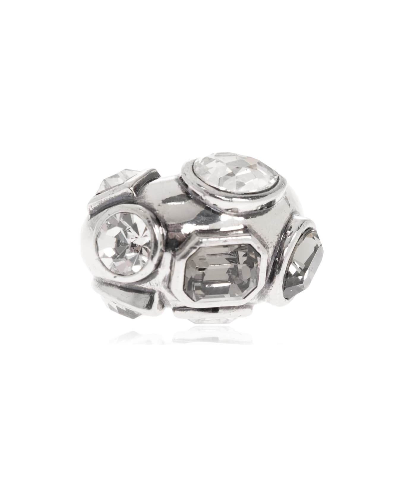 Experience the artistry of Etro with this striking Crystal Ring, a true testament to contemporary elegance. The bold, silver-toned band is expertly crafted from high-polish brass, exuding refined luminosity and a refined, sculptural silhouette. Its wide, substantial shape seamlessly transitions into a domed, three-dimensional front, where a constellation of transparent crystals is nestled. Each crystal set in eclectic round, square, and rectangular mountings catches the light in captivating fashion, highlighting the ring's distinct, dynamic geometry. Free from overt logos, this ring celebrates understated luxury, with only discreet markings inside the band for authenticity. Drawing on Etro's rich heritage and visionary Italian design, this exceptional piece offers a unique marriage of innovation and timeless sophistication. Why choose this product? Unique, irregular geometric design elevates any ensemble Expertly crafted from lustrous, high-quality materials Sparkling crystals create a mesmerizing interplay with light Discreet designer authenticity ensures exclusivity A sophisticated statement from renowned Italian house Etro