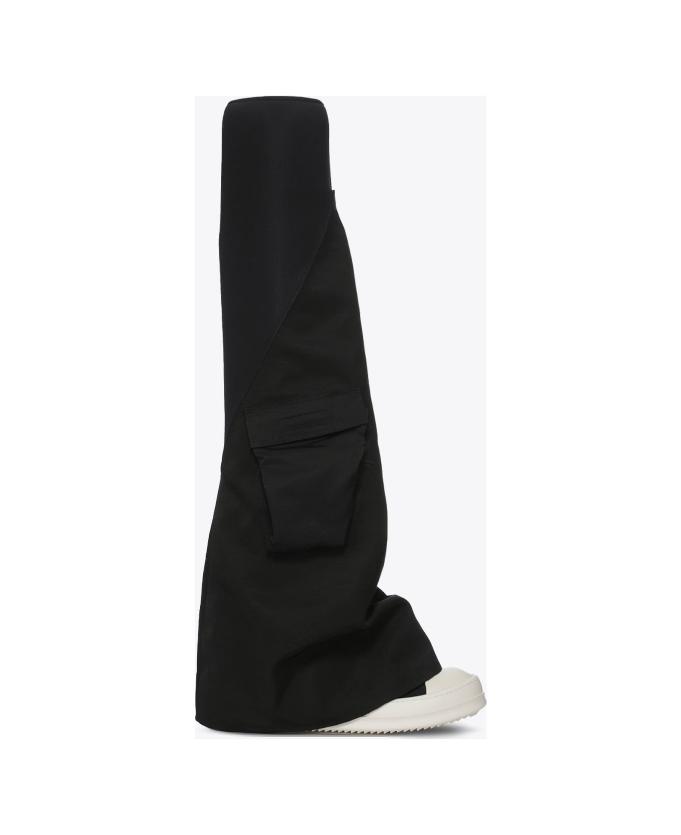 Black nylon and scuba stocking sneaker with side pocket. Off white rubber sole and leather cap-toe. Made in Italy.
