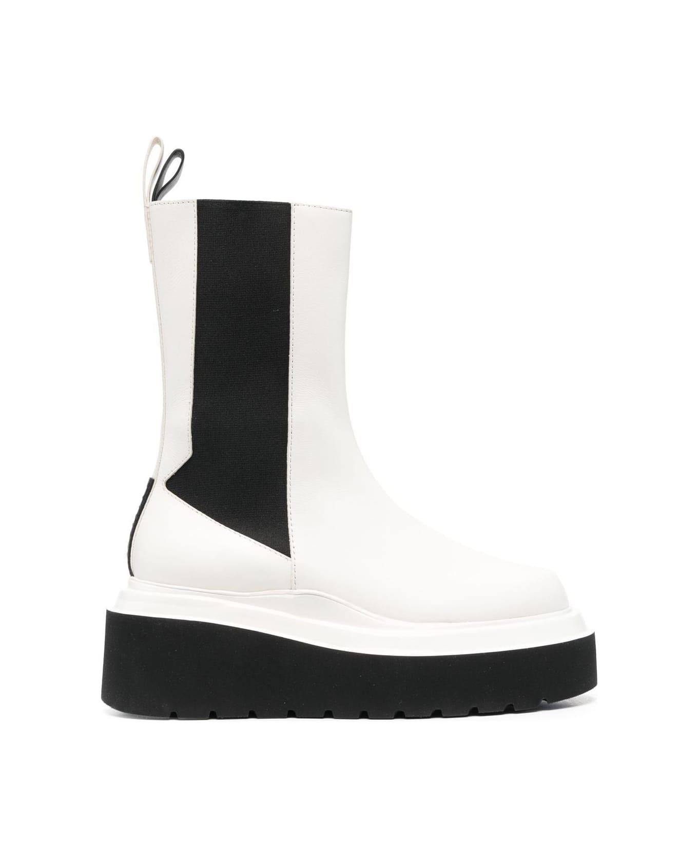 two-tone wedge Chelsea boots from 3juin featuring white/black, calf leather, ankle-length, round toe, elasticated side panels, pull-tab at the heel and low wedge heel.