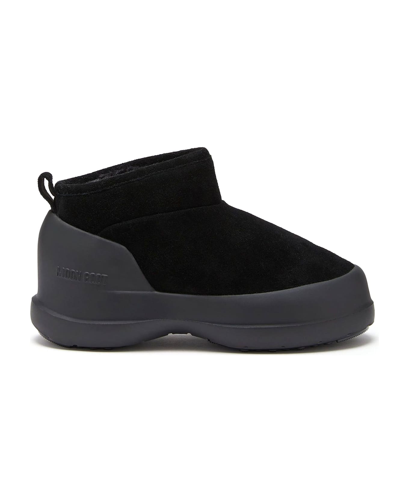 Luna Low Black Suede Boots, Gender-neutral design, Ambidextrous, 100% water-repellent, Pull tab at heel, Logo-embossed heel counter, EVA mid sole, Thermoplastic rubber tread sole, Faux-fur lining, Slip-on design,