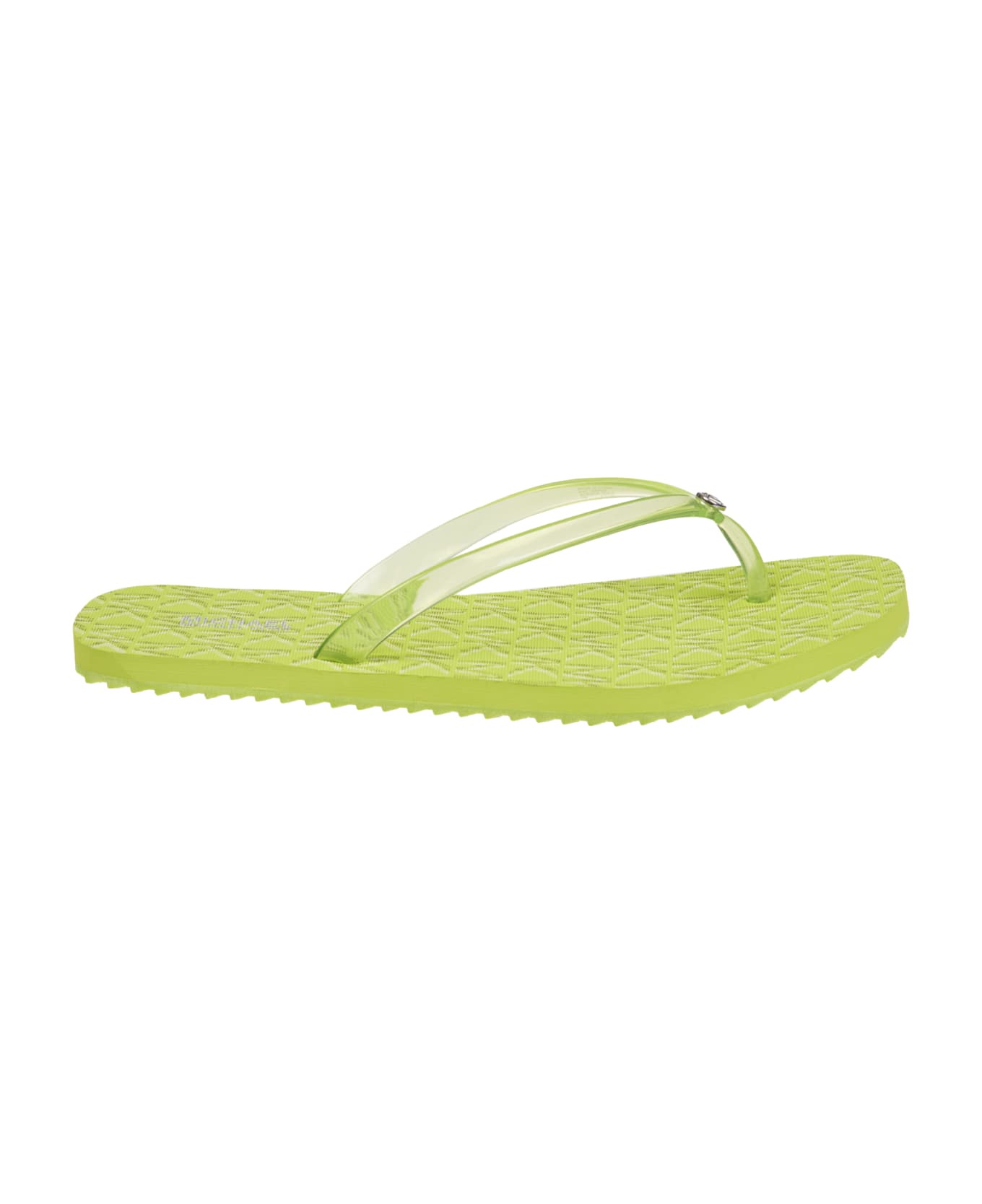 Fluo green flip flops with tone-on-tone logoed bottom. Rubber sole. Height 1 cm. Composition: 100% pvc. Made in China.