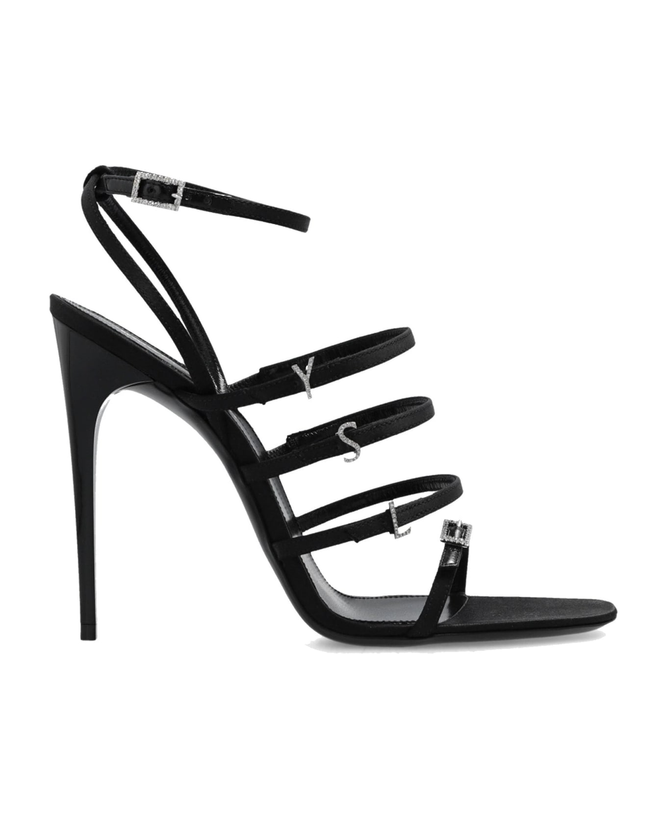 Composition: 100% silk Leather insole and sole Multibuckle Crystal embellishments Iconic YSL monogram Heel 13 cm / 5,1 in Made in Italy