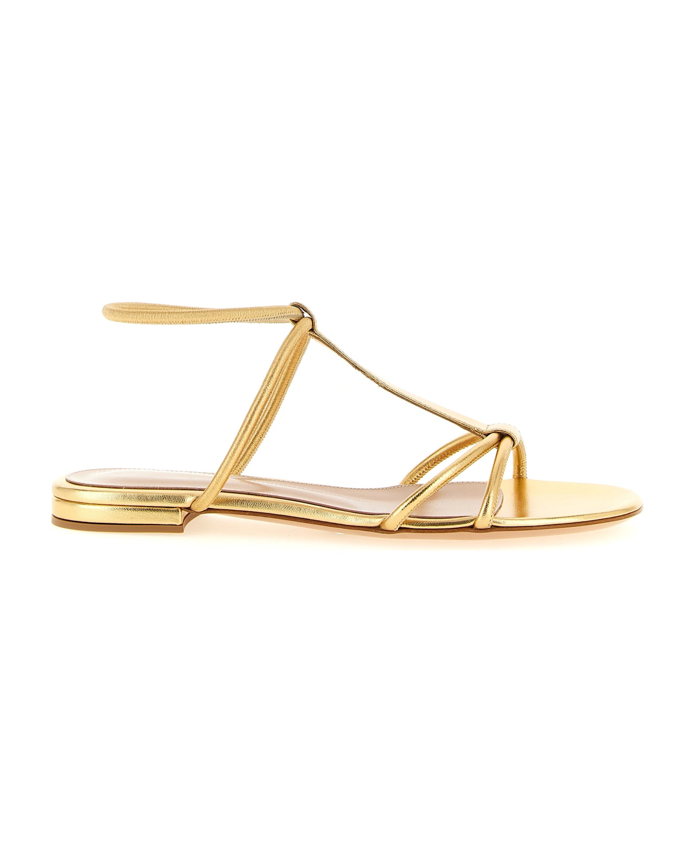 'Lilo' metallic nappa leather sandals with elastic ankle strap, leather sole.