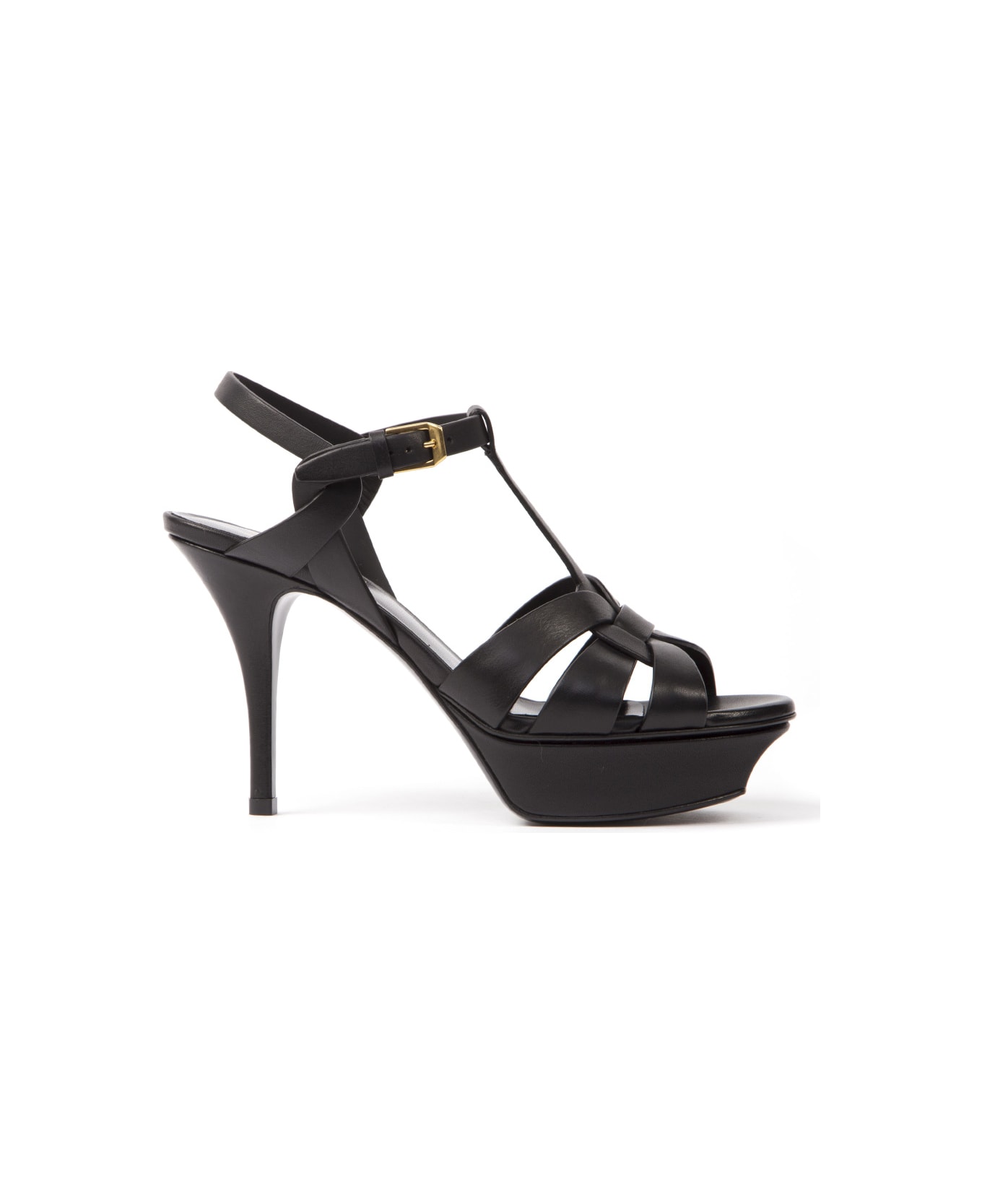 -Leather covered heel -30mm External covered platform -Leather strap with buckle closure -Leather insole and lining -Made in Italy -Colour: Black Composition: 100% Calf Leather heel: 105mm