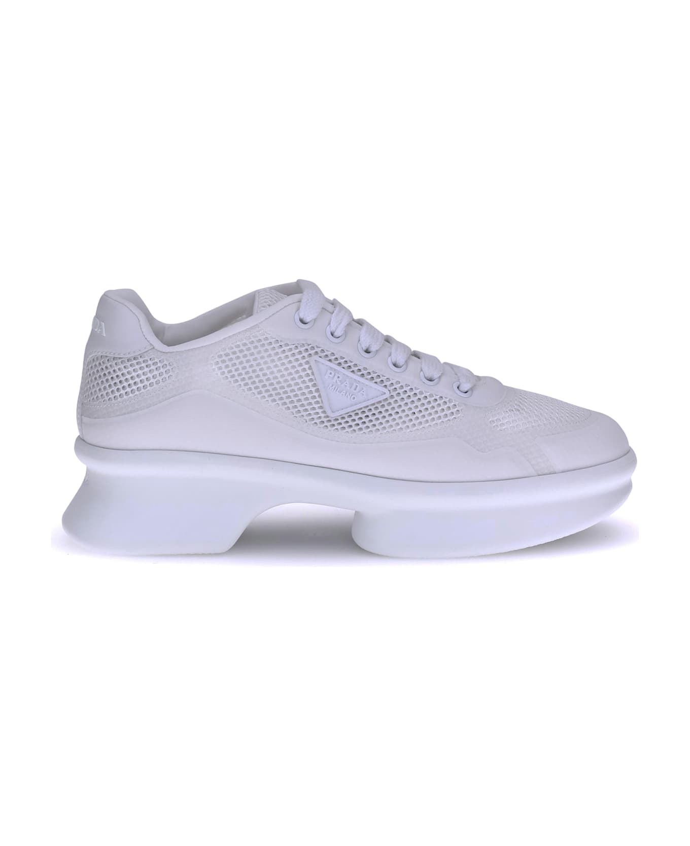 Prada's leather sneakers reinterpret the sporty style with a contemporary and decisive aesthetic. characterized by a distinctive sculptured sole and lace-up closure, they have an all-over perforated design that gives lightness and breathability. the classic triangle with side logo elegantly signs a bold and versatile model, perfect for adding character to everyday looks.