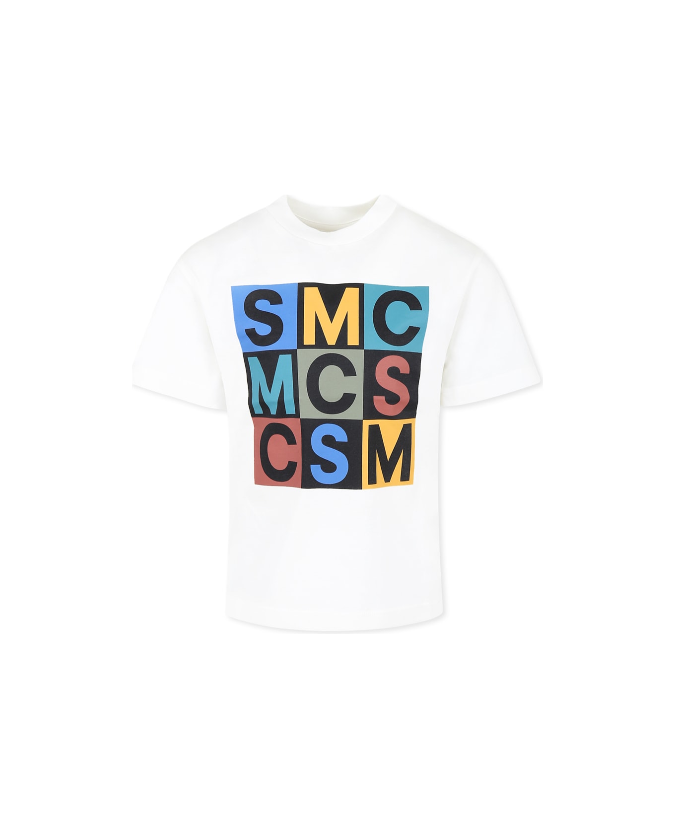 Ivory t-shirt in GOTS certified organic cotton, with short sleeves and ribbed crew neck. It is embellished with logo printed on the front.