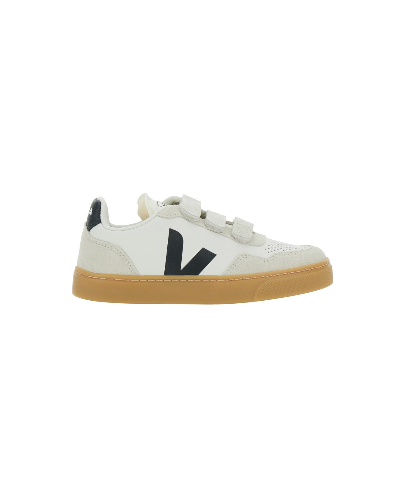 'v-90' White Low Top Sneakers With Logo Patch On The Side And Contrasting Heel With Logo Lettering In Leather Boy