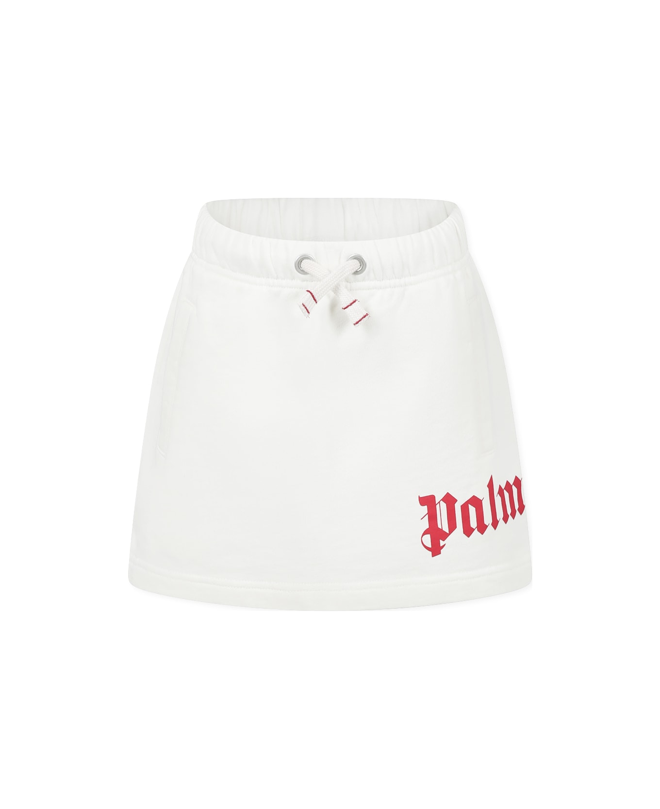 Ivory skirt in brushed cotton, with elasticated waist, drawstring and side pockets. It is embellished with side logo.