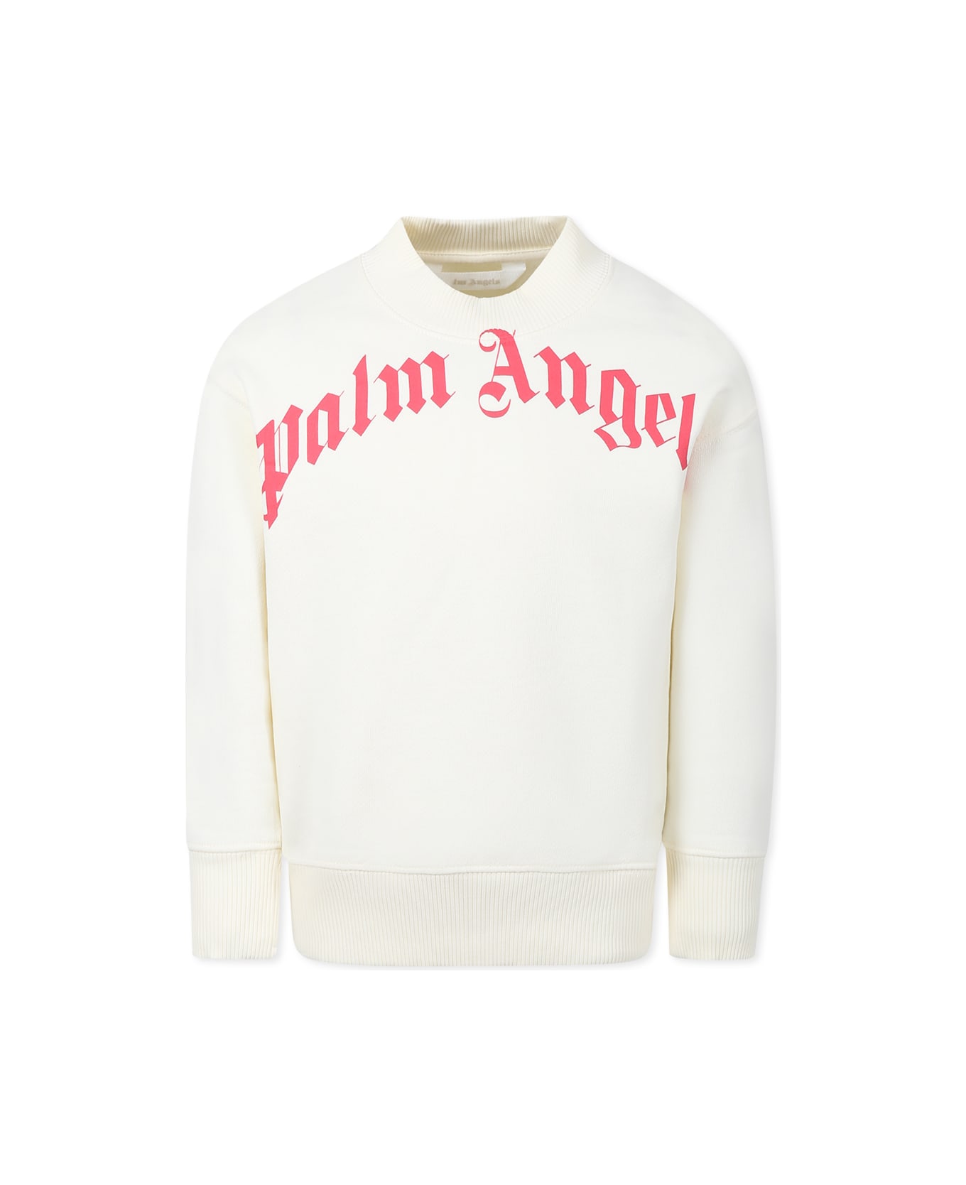 Ivory sweatshirt in brushed cotton, long sleeves, with ribbed crew neck, cuffs and hem. It is embellished with red logo printed on the front.