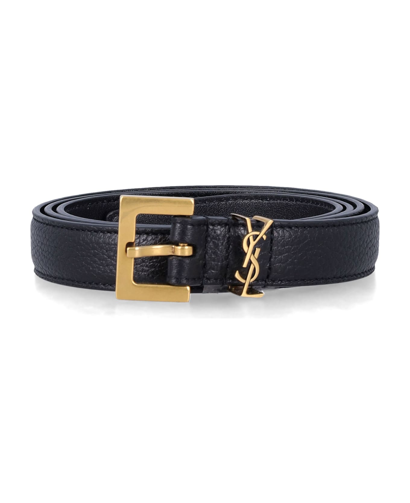 Refined And Essential, This Saint Laurent Thin Belt Is Crafted In Grained Leather And Finished With A Square Buckle Engraved With Saint Laurent Paris. The Iconic Cassandre Loop In Gold-toned Metal Adds A Discreet Yet Recognizable Signature, Enhancing Both Tailored And Casual Silhouettes With Understated Elegance. Square Buckle With Saint Laurent Paris Engraving Cassandre Metal Loop Gold-toned Metal Hardware Adjustable Buckle Closure Height: 2 Cm