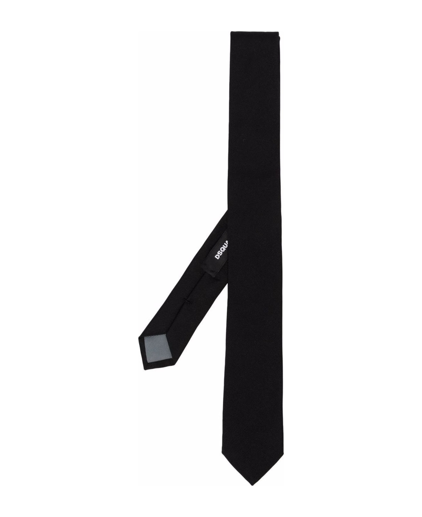 Black silk tie, internal logo patch, pointed tip, adjustable fit Composition: Silk, 100%