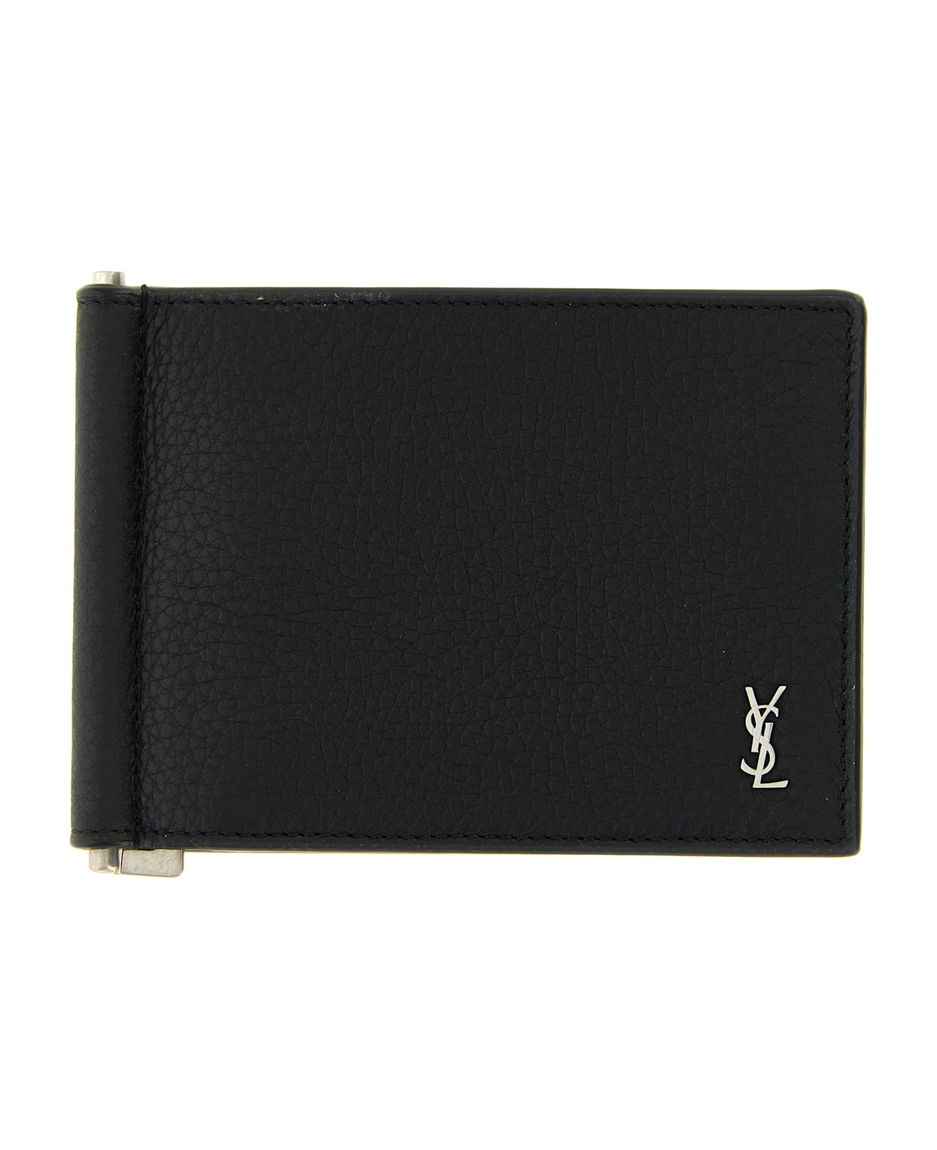 Hammered leather card holder, front metal 'Tiny Cassandre' logo, book opening. Composition: 100% calfskin leather (Bos Taurus)
