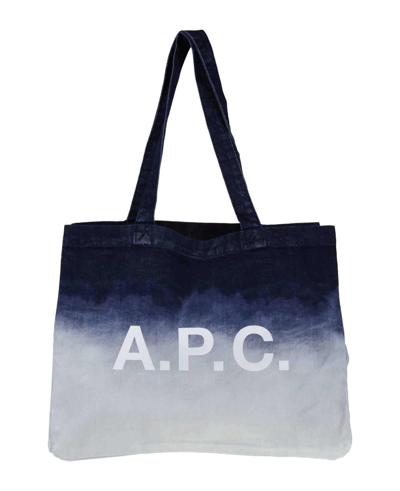 A. P. C. Blue and white cotton bag, front logo detail, handles. Composition: 100% Co
