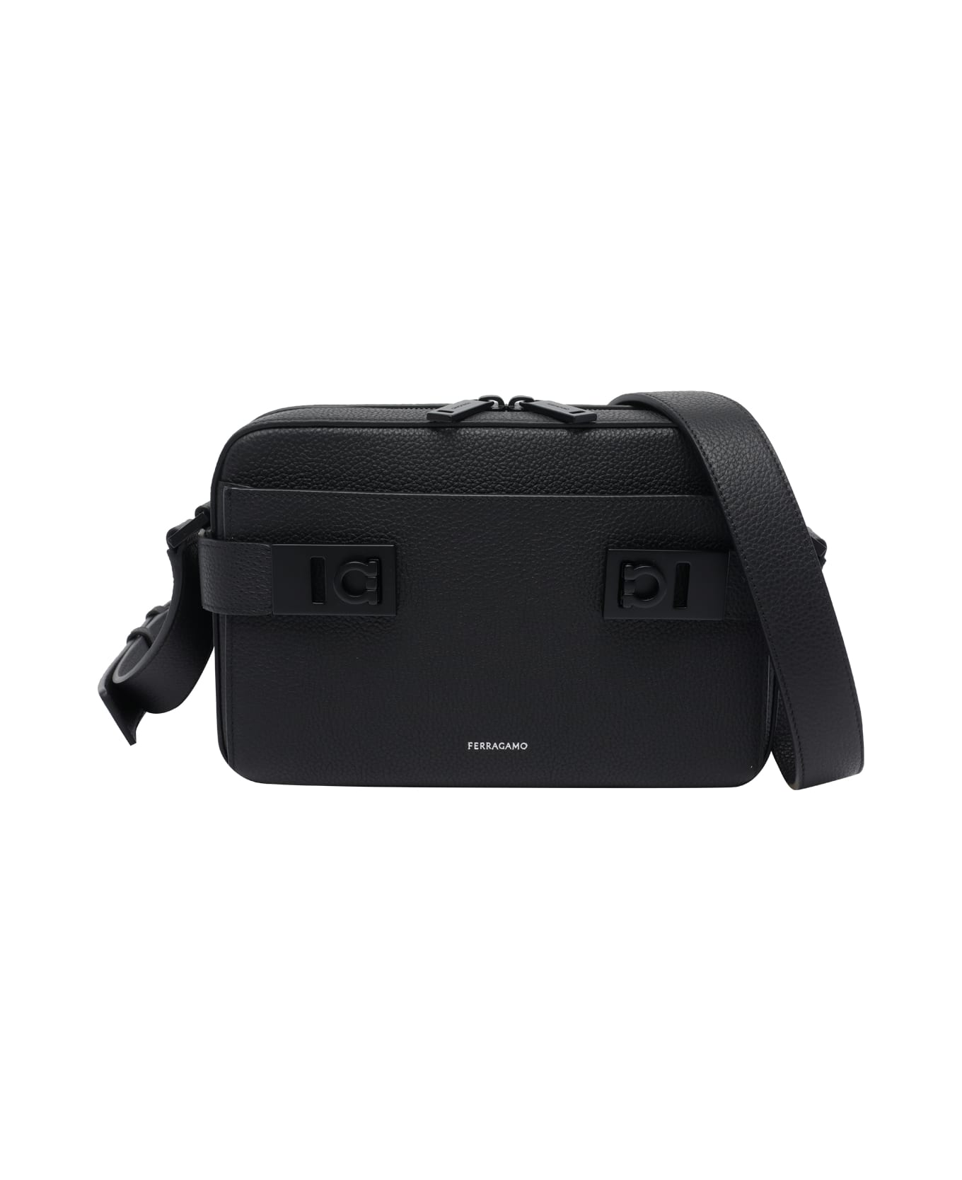 Ferragamo black Twins crossbody bag, zip closure, inner zipped pocket, external open pocket, adaptable strap, frontal mini logo Composition: 100% Calf Leather