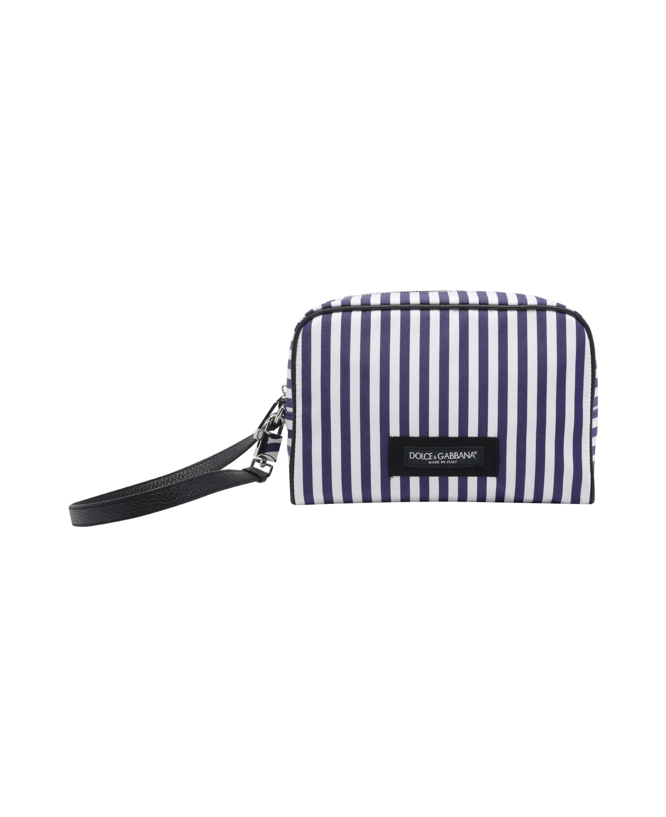 Dolce&Gabbana white and blue striped handbag, zip pocket, wrist strap, patch logo Composition: 100% Fabric