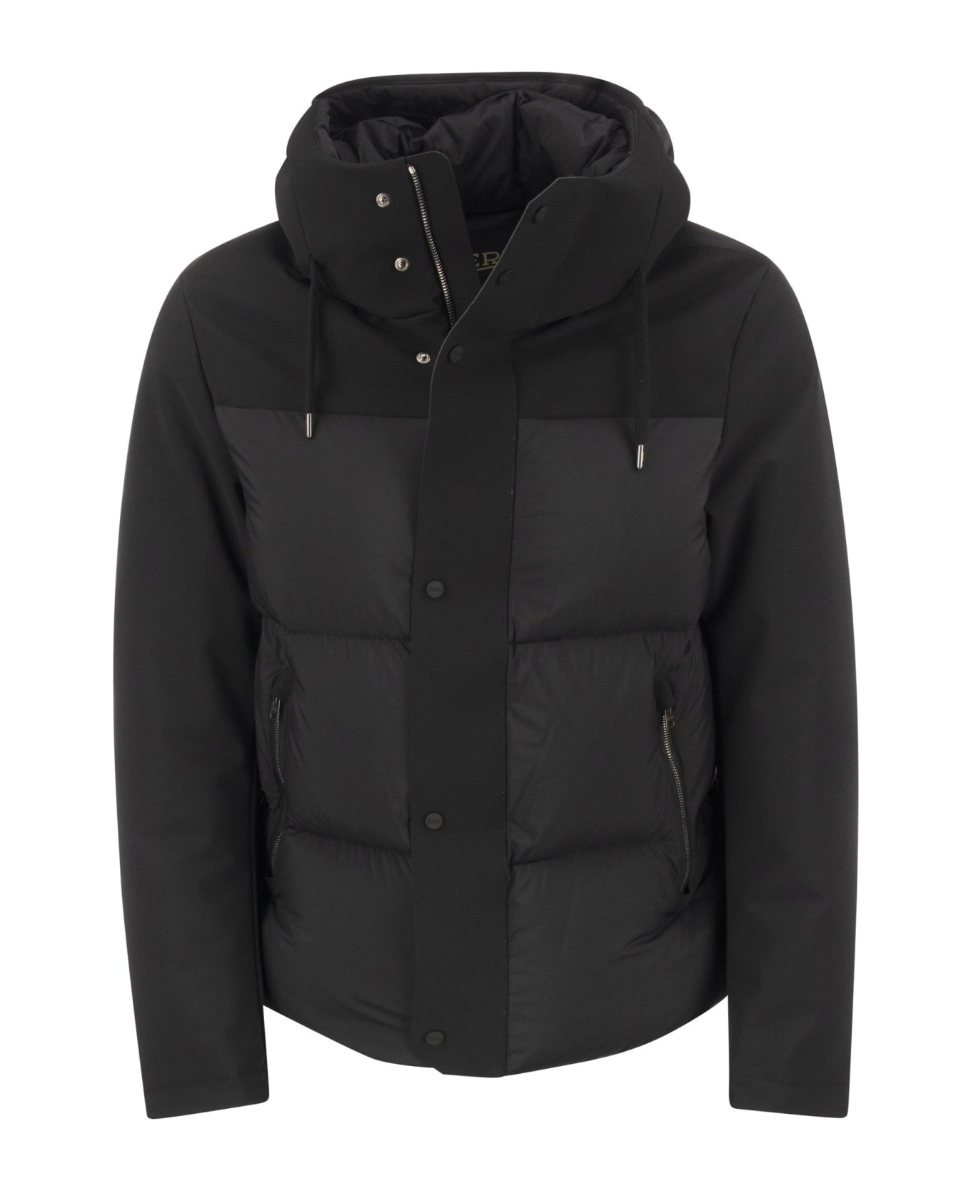 Bomber jacket made of recycled nylon 6. 6 microfibre fabric, finished with WR treatment. Garment that clings to the figure like a second skin, being extremely practical thanks to its resistance to pilling and wear. Ideal for carefree winter holidays. Part of the new Herno Globe Lab label, which distinguishes all garments made partly from environmentally sustainable materials. - Regular fit - Adjustable fixed hood with drawstring - Two-way zip and snap fastening - Welt pockets with zip - Goose feather padding - Developed by Herno Globe Lab DESIGNER ID: PI000898U 12456 9300