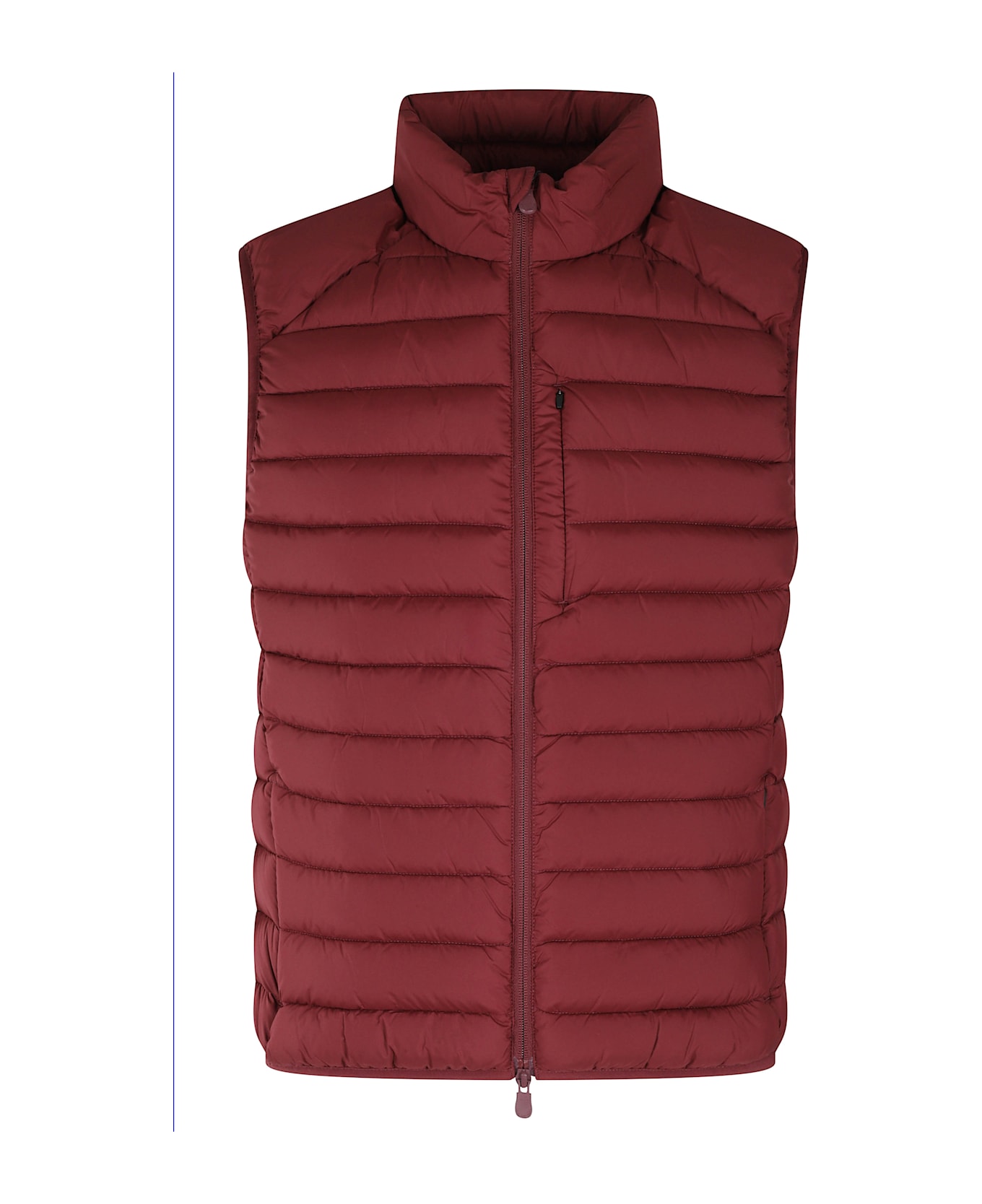 Rhus vest - Save The Duck - Burgundy color - Quilted fabric - High collar - Flush side pockets with zipper - Silicone side logo applique - Front zipper closure - Regular fit.