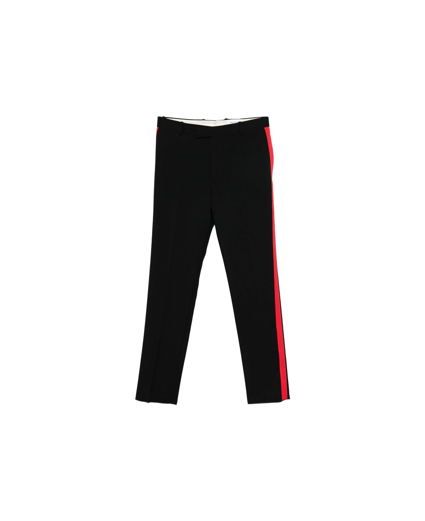 black red stripe side stripe straight leg belt loops fly zip