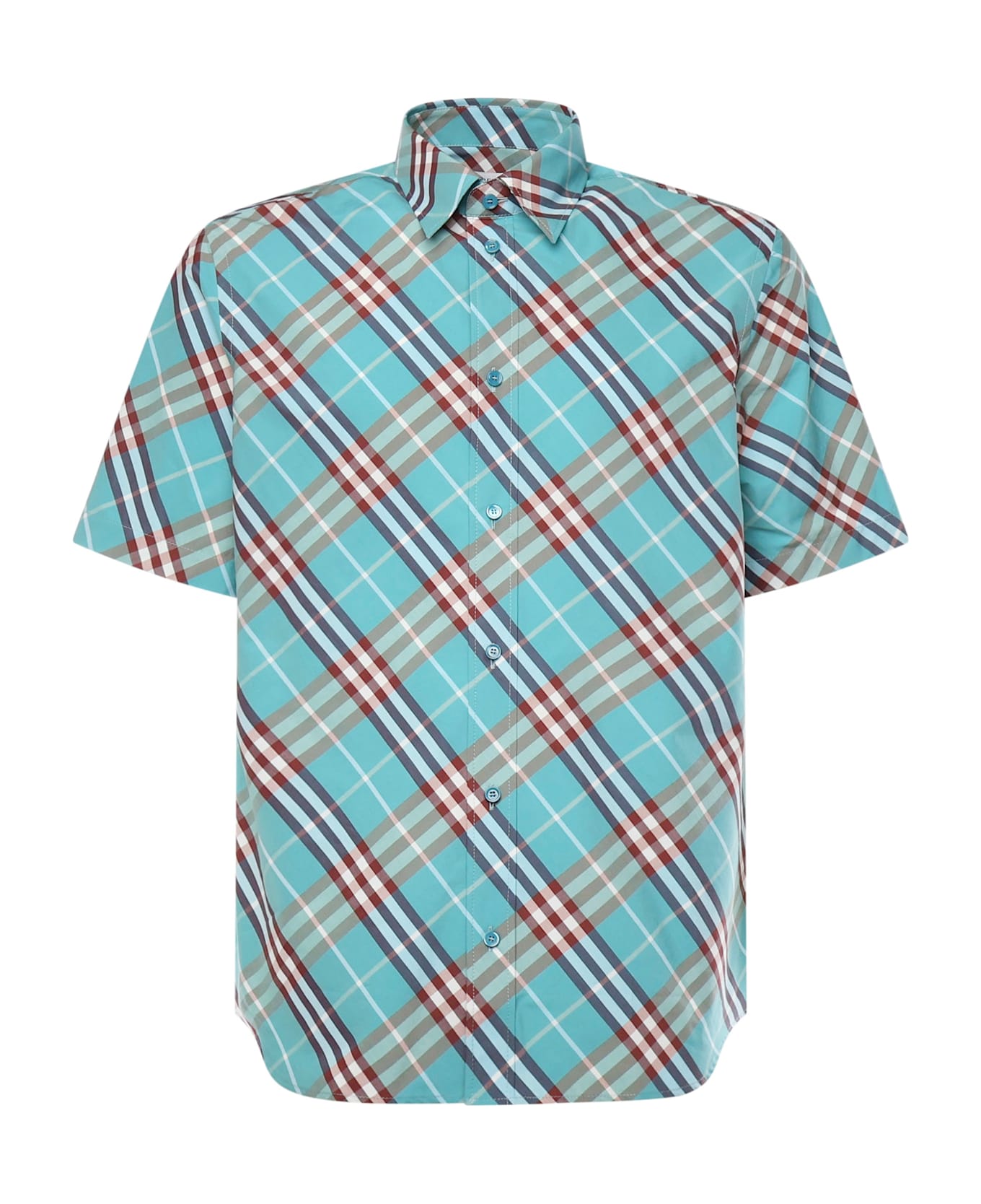 - Made of cotton poplin - Front button closure - Short sleeves - Point collar - Size shown is M - Made in Italy - Designer color: Atom Blue