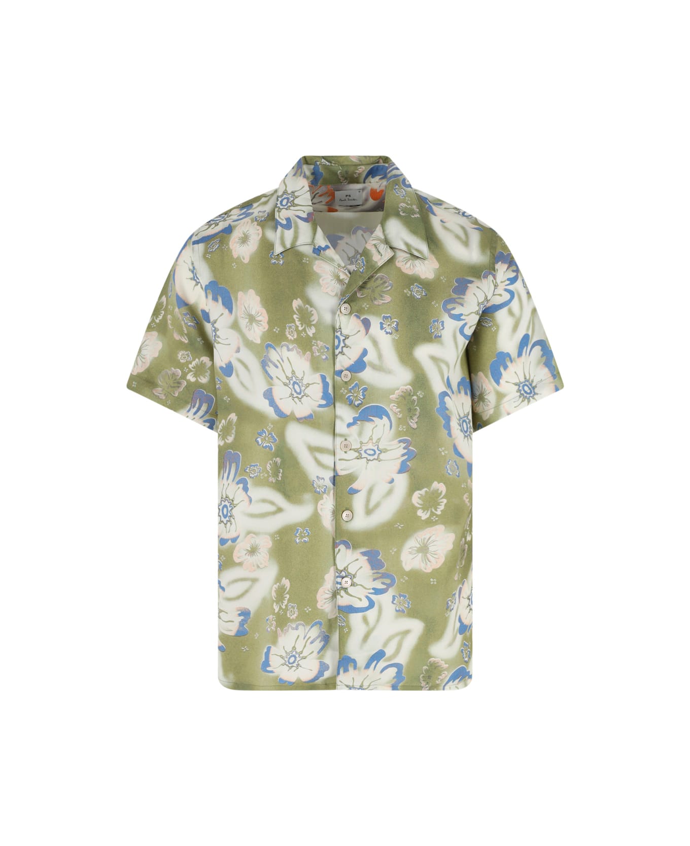 - Paul Smith printed shirt in green fabric - Camp collar - Button closure - Short sleeves - All-over floral print