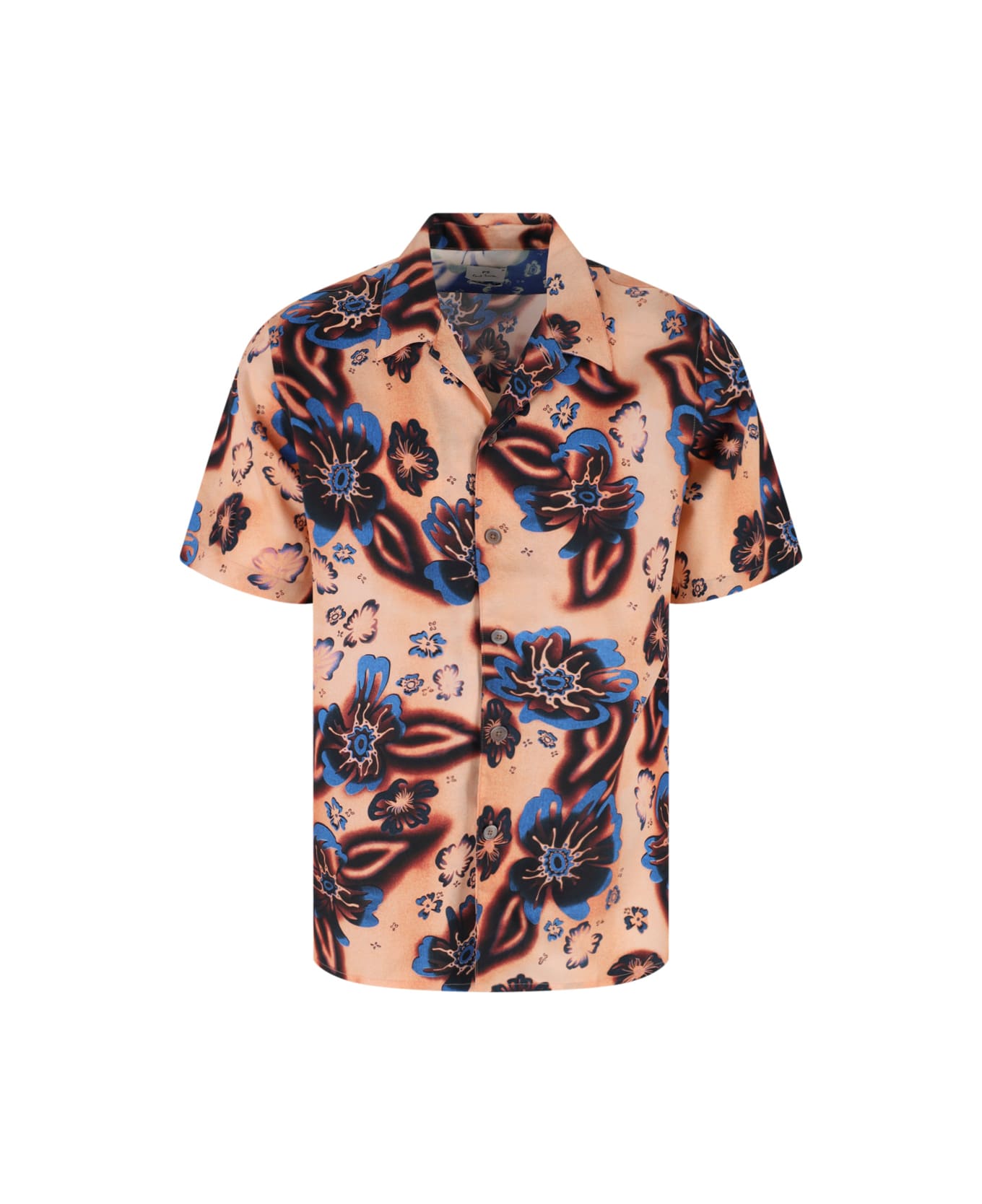 - Paul Smith printed shirt in pink fabric - Camp collar - Button closure - Short sleeves - All-over floral pattern